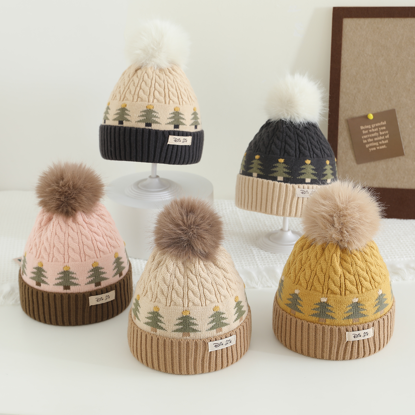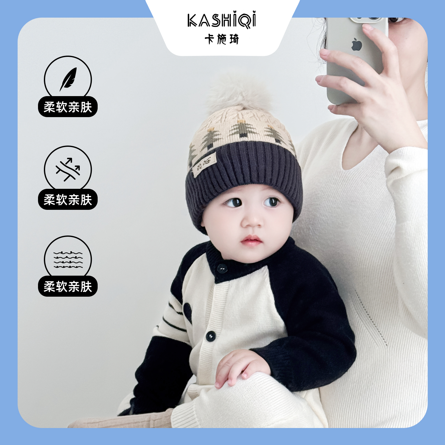 婴儿帽子秋冬季可爱超萌男女童套头毛线帽儿童加厚保暖护耳帽百搭