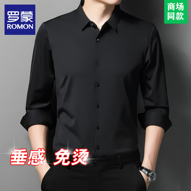 罗蒙春秋季高级感免熨烫长袖衬衫男士中年商务休闲 纯色无痕抗皱