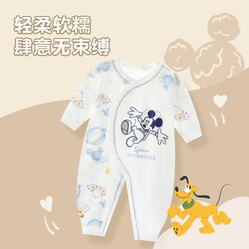 迪士尼婴幼儿秋季连体衣小宝宝春秋纯棉衣服婴秋装哈衣睡衣爬爬服