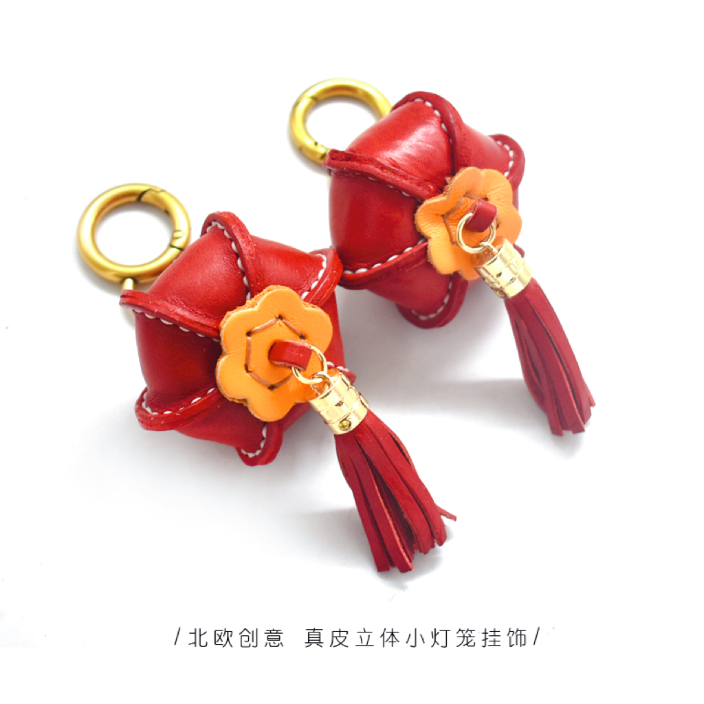 真皮 国风小灯笼~包挂饰牛皮钥匙扣挂件汽车内饰吉祥手账书签礼物