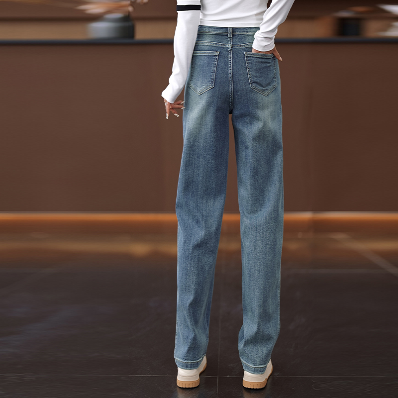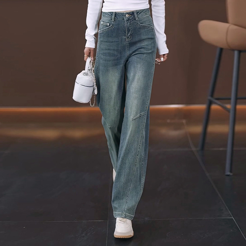 啄木鸟牛仔弯刀裤女士秋季新款高腰复古小个子休闲直筒镰刀裤
