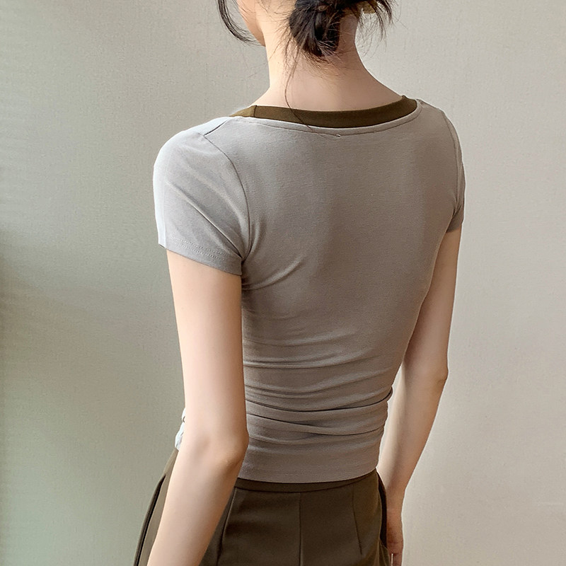 歌倍尚短袖T恤半袖通勤薄款撞色