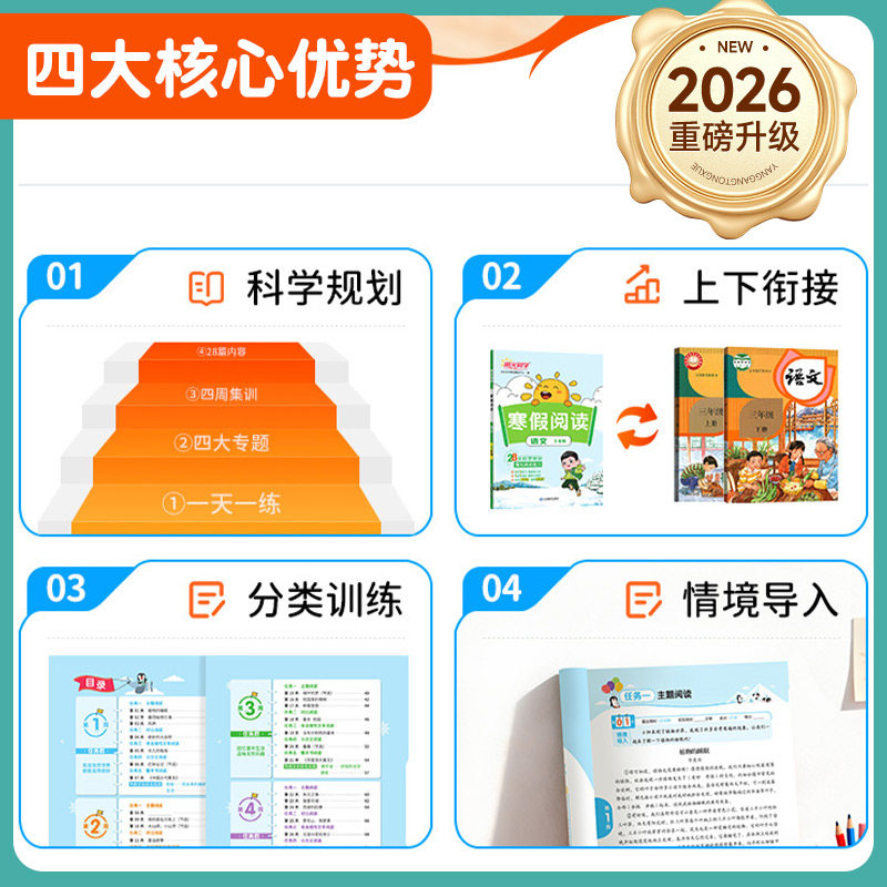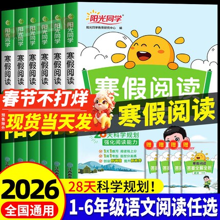 阳光同学寒假阅读衔接小学一二三四五六年级上册下册寒假语文数学天天练阅读理解专项训练题练字帖计算题强化专项训练人教版作业本