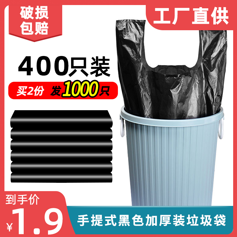 加厚黑色抽绳式垃圾袋一次性家用厨房背心式中大号家居塑料袋