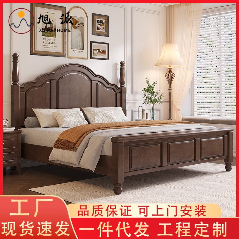 实木床美式乡村复古床1.8米双人大床主卧橡木婚床简约1.5米储物床