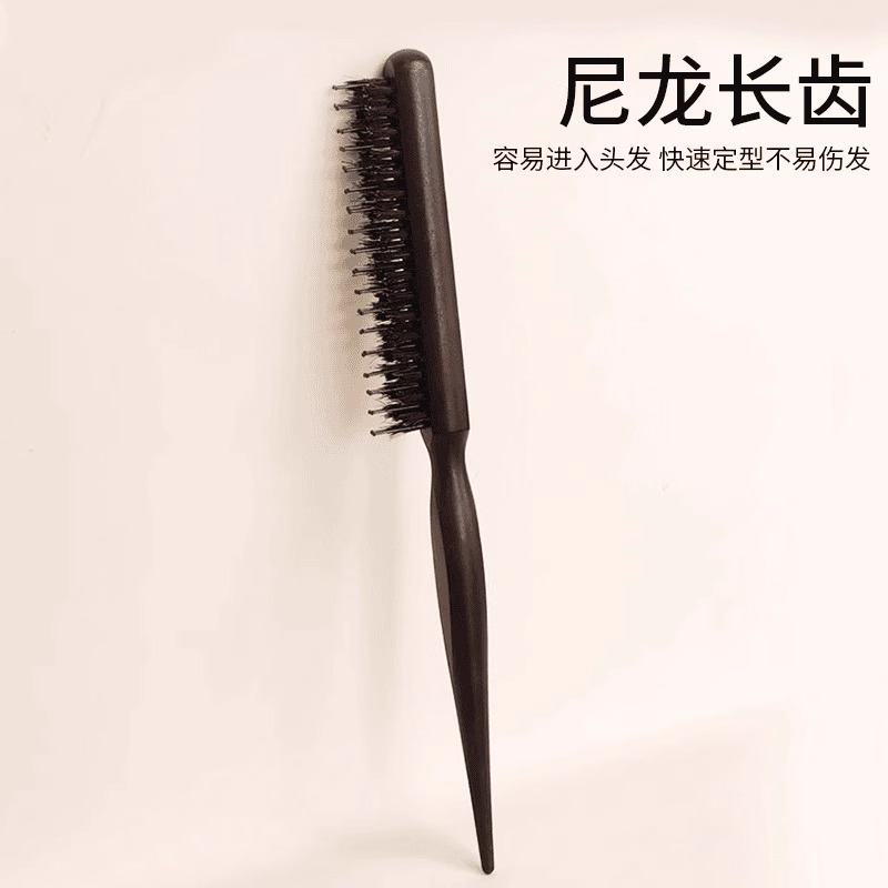 猪鬃毛窄齿梳美发三排打毛梳子蓬松造型长柄化妆尖尾盘发卷发木梳