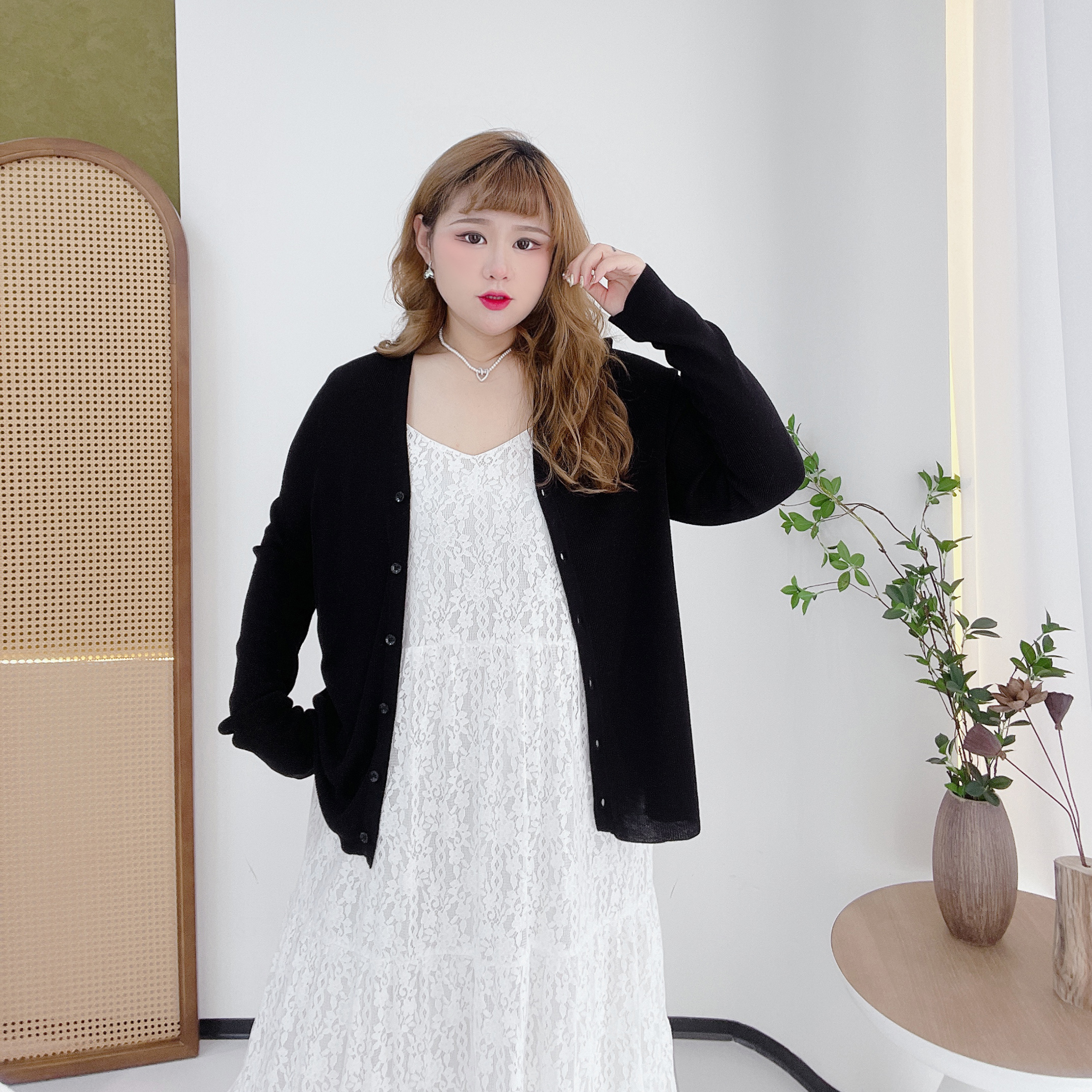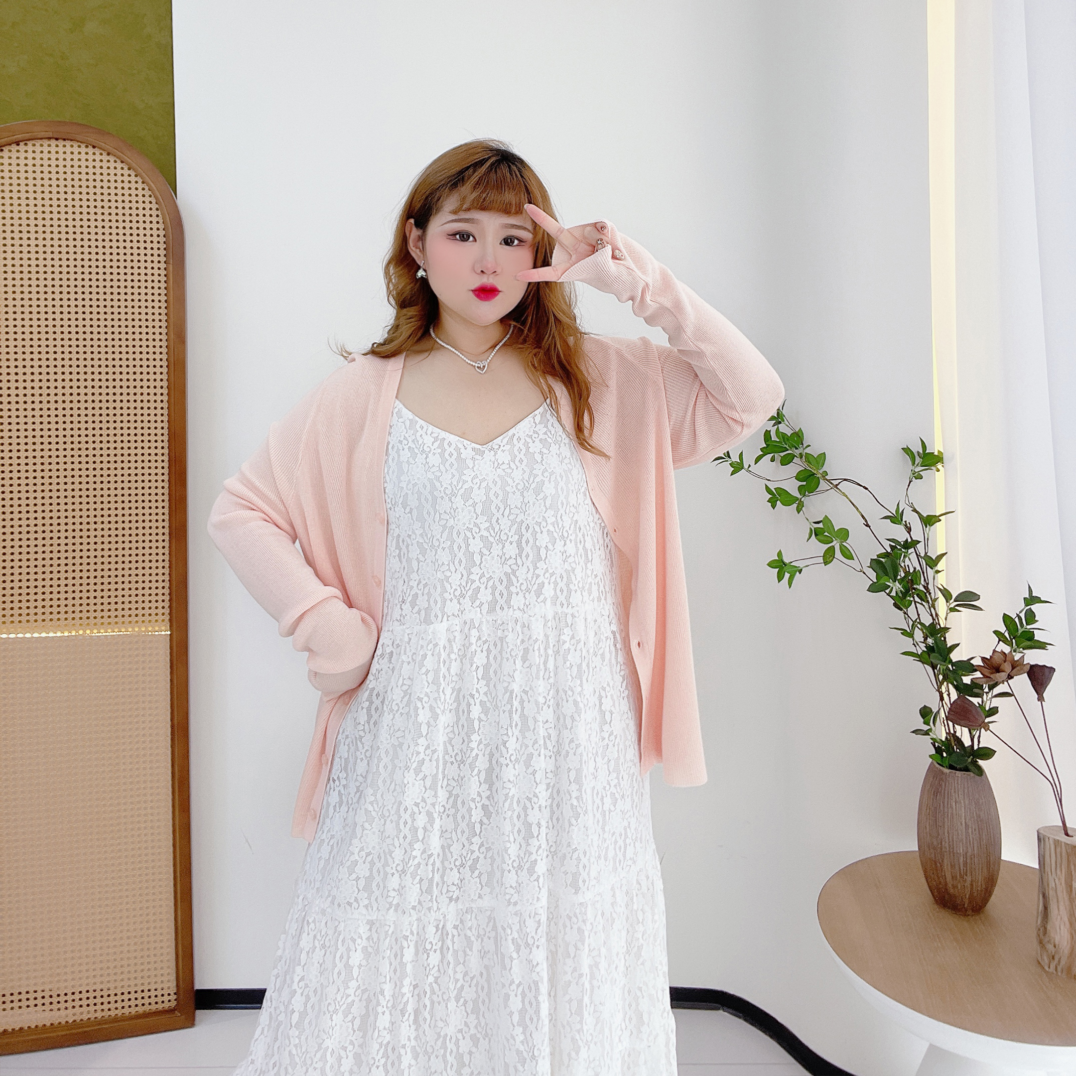 2025新款胖莹莹大码女装胖mm甜美纯色弹力清新少女氛围感针织开衫
