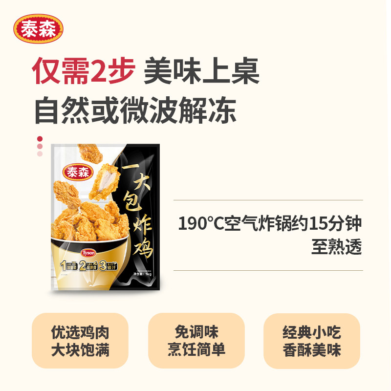 泰森一大包炸鸡1kg脆皮韩式炸鸡冷冻空气炸锅食材半成品炸类小吃