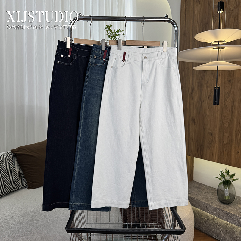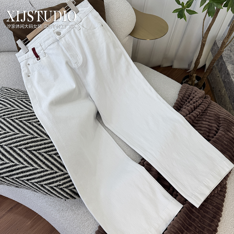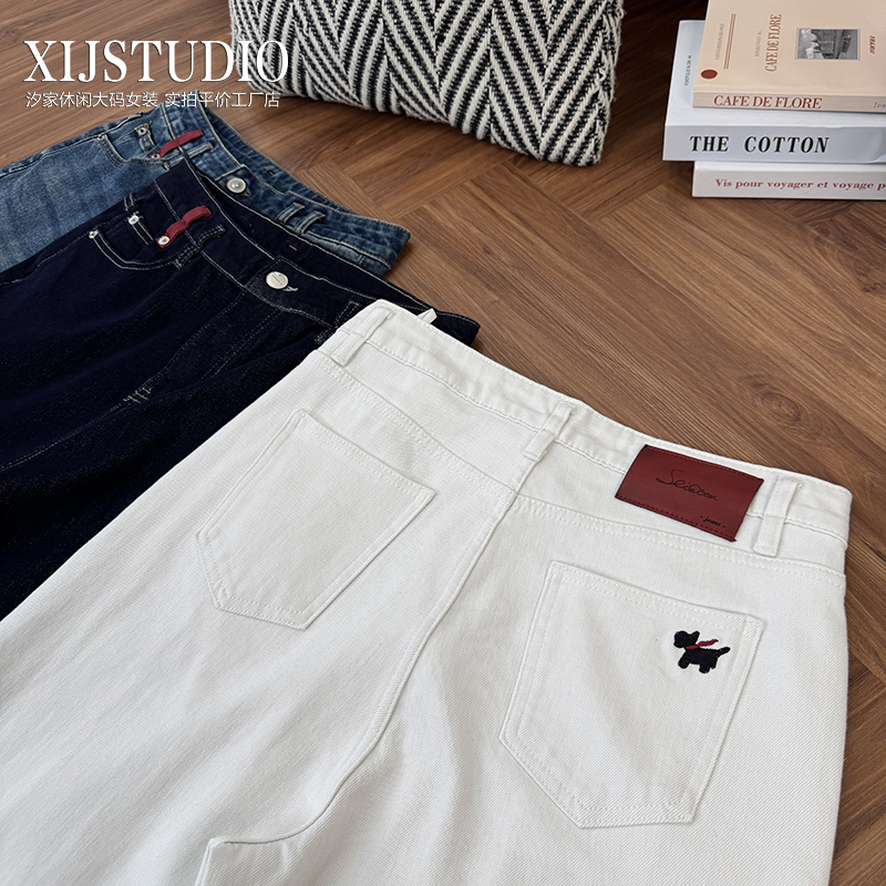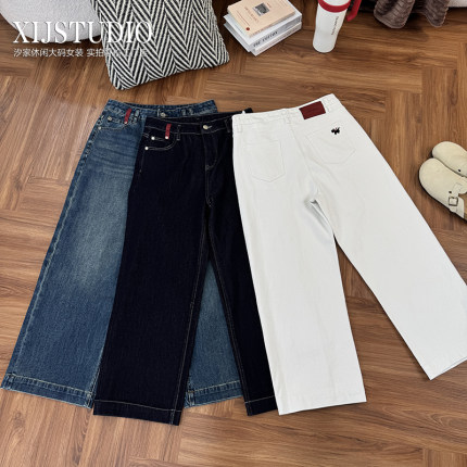 汐家女裤 秋季新款三色直筒奶奶裤大码高腰休闲宽松牛仔裤