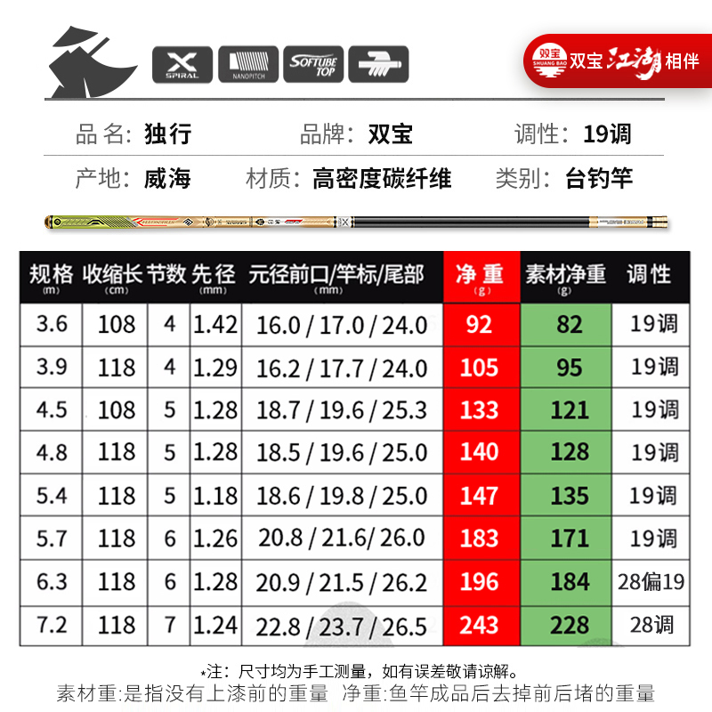 双宝独行6H19调鱼竿手竿碳素超轻超硬黑坑台钓鲤鲫罗非钓鱼竿黑棍