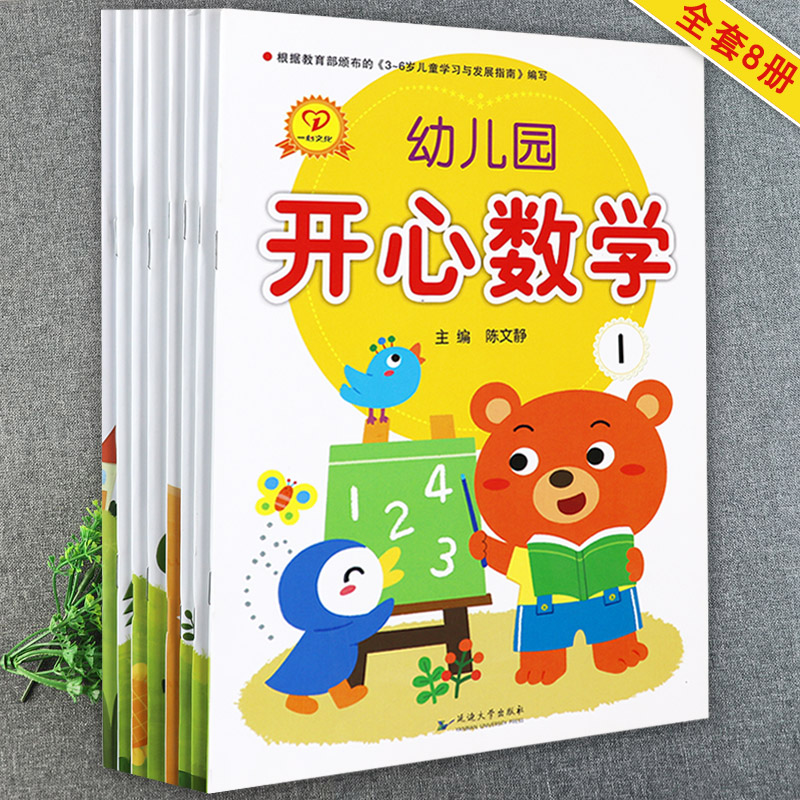 一心文化幼儿园开心数学教材全套1-8册小中大学前班上下册幼儿潜能开发课程五大领域新蒙氏幼儿数学全脑思维训练幼儿数学启蒙教材