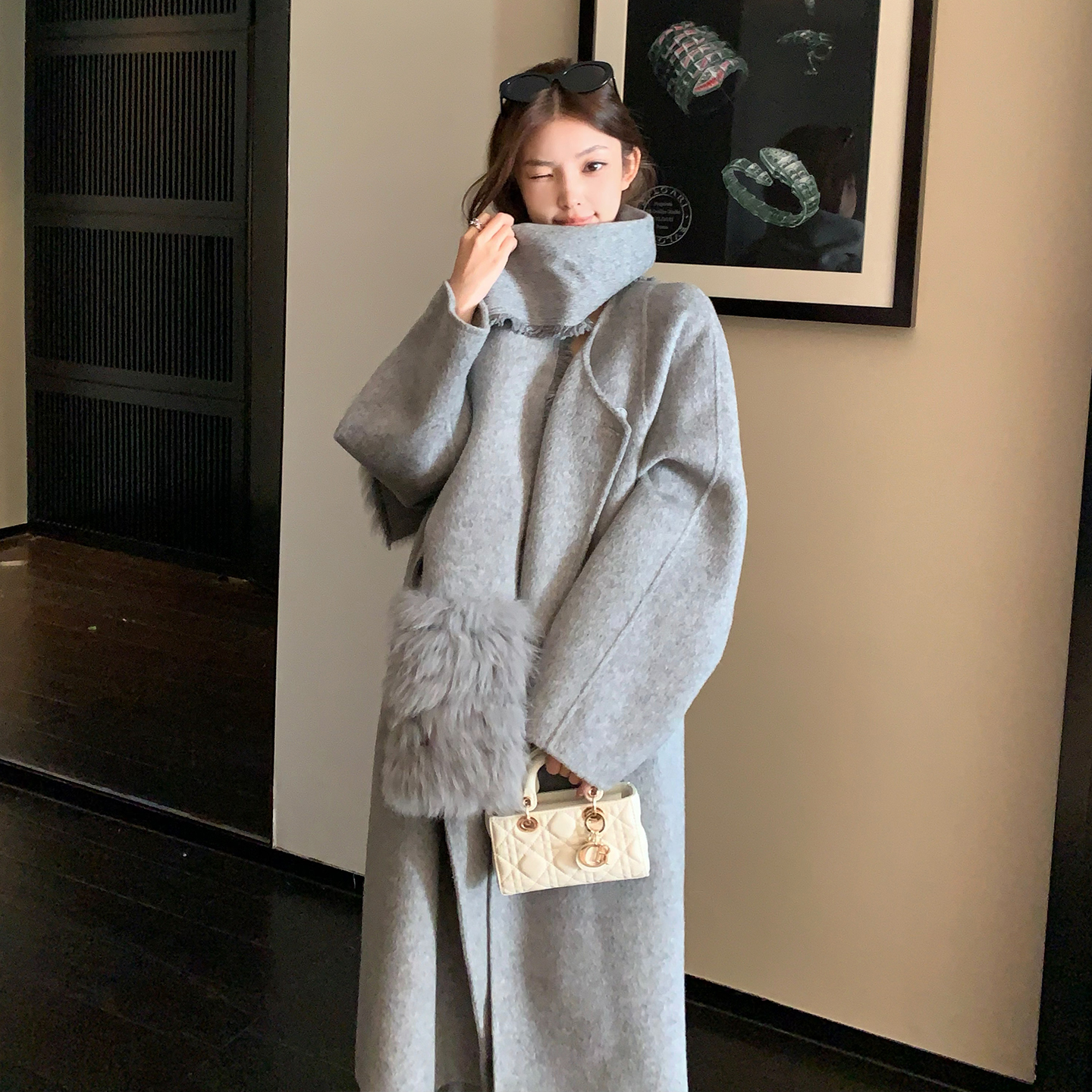 秋小姐"初冬之恋"2025秋冬新款羊绒围脖双面呢羊毛呢子大衣外套女