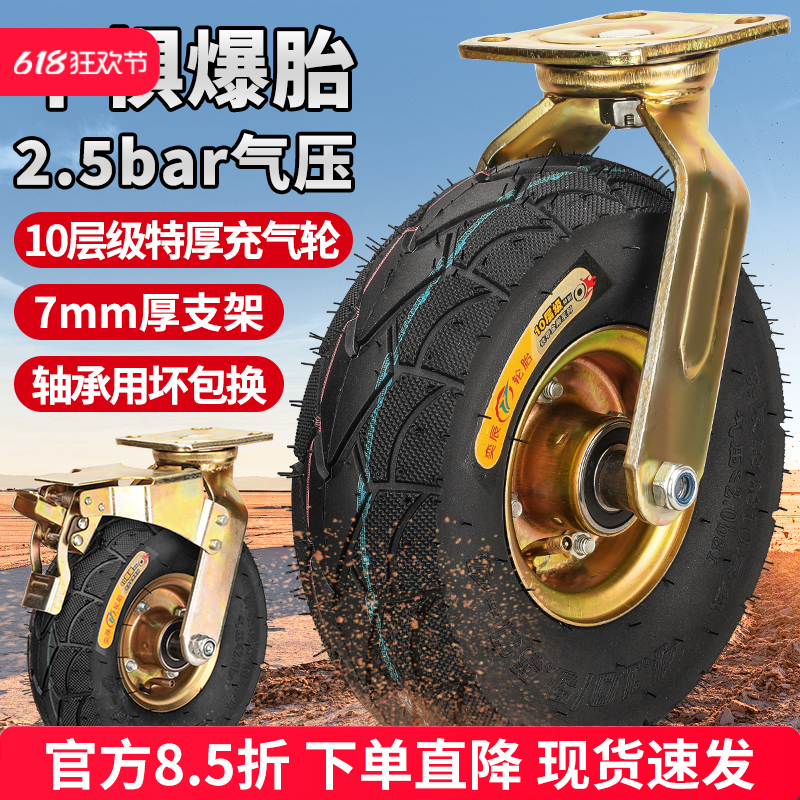 8寸减震充气万向轮轮子打气轮胎橡胶轮手推车定向轮静音重型轮子