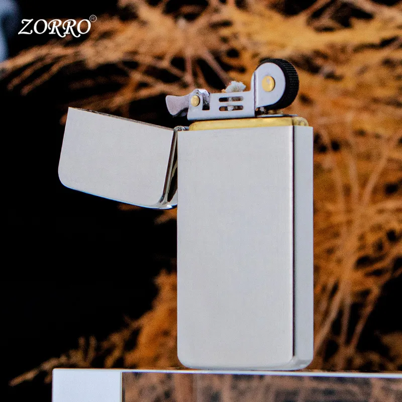 佐罗超薄白铜打火机光板机煤油防风可定制个性logo广告语点烟器