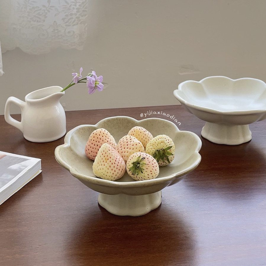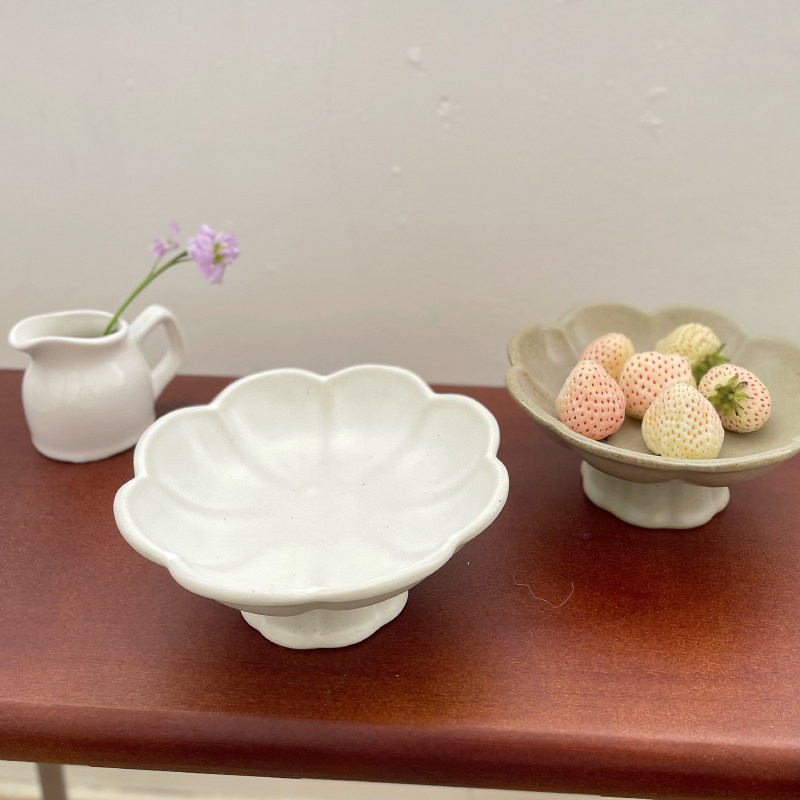 一家小店 独自美丽 景德镇粗陶 高脚花朵小食盘 茶点果盘小吃碟