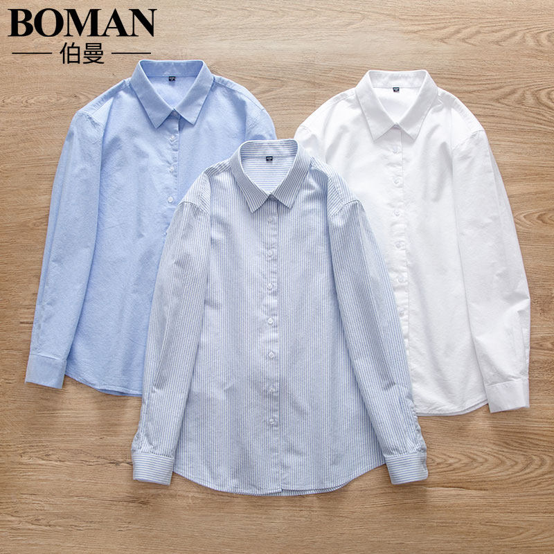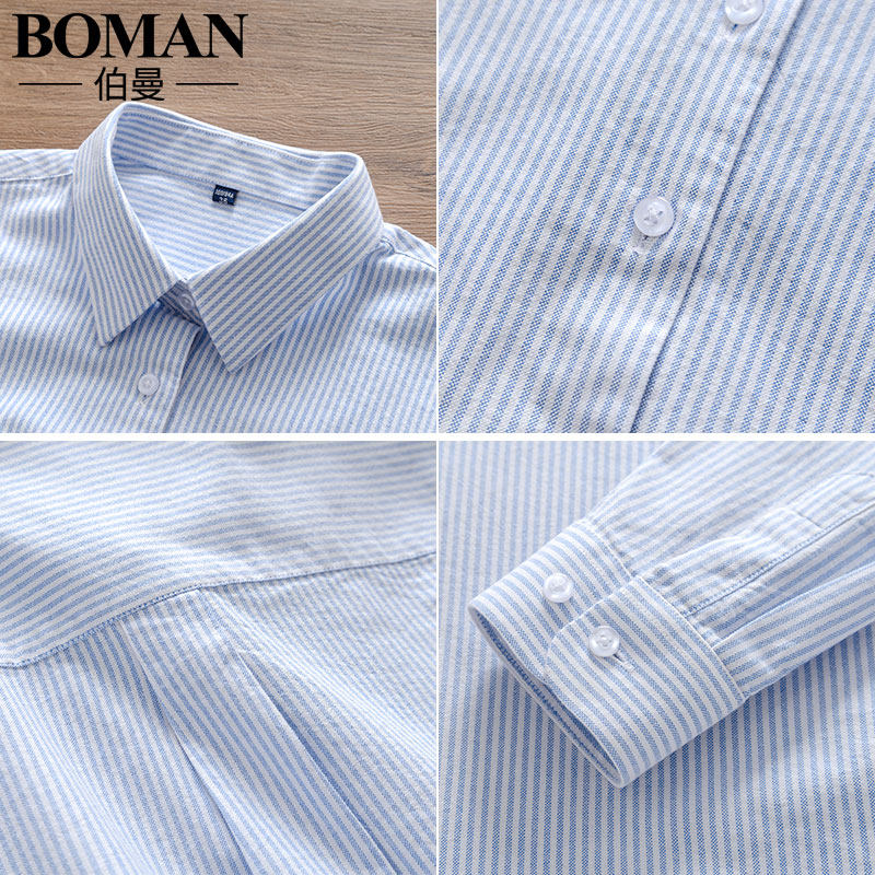 春季新款全棉牛津纺衬衣百搭通勤条纹衬衫女工作服修身正装白制服