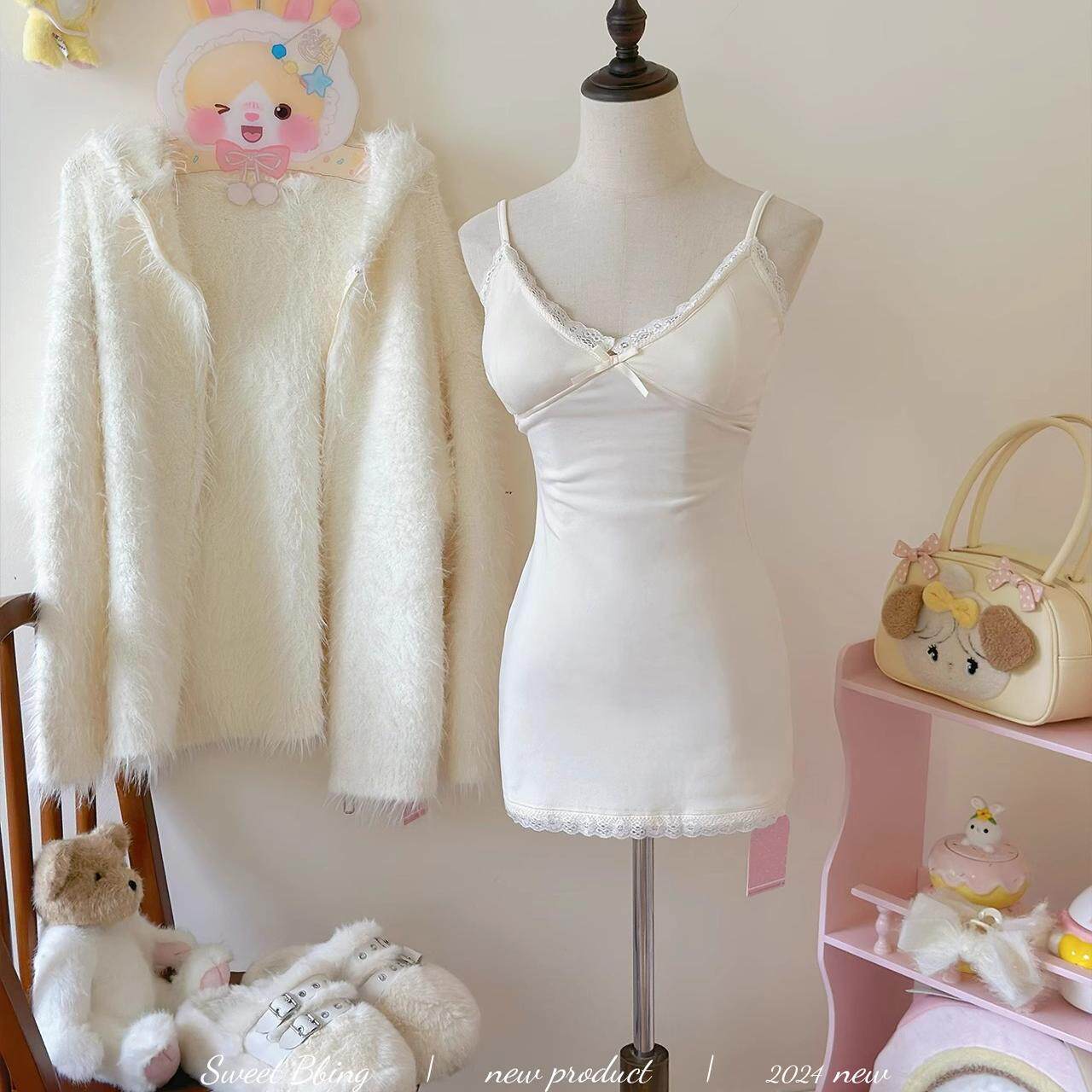 BBING甜饼 奶油泡芙 纯欲性感蕾丝边吊带包臀短裙无袖紧身连衣裙
