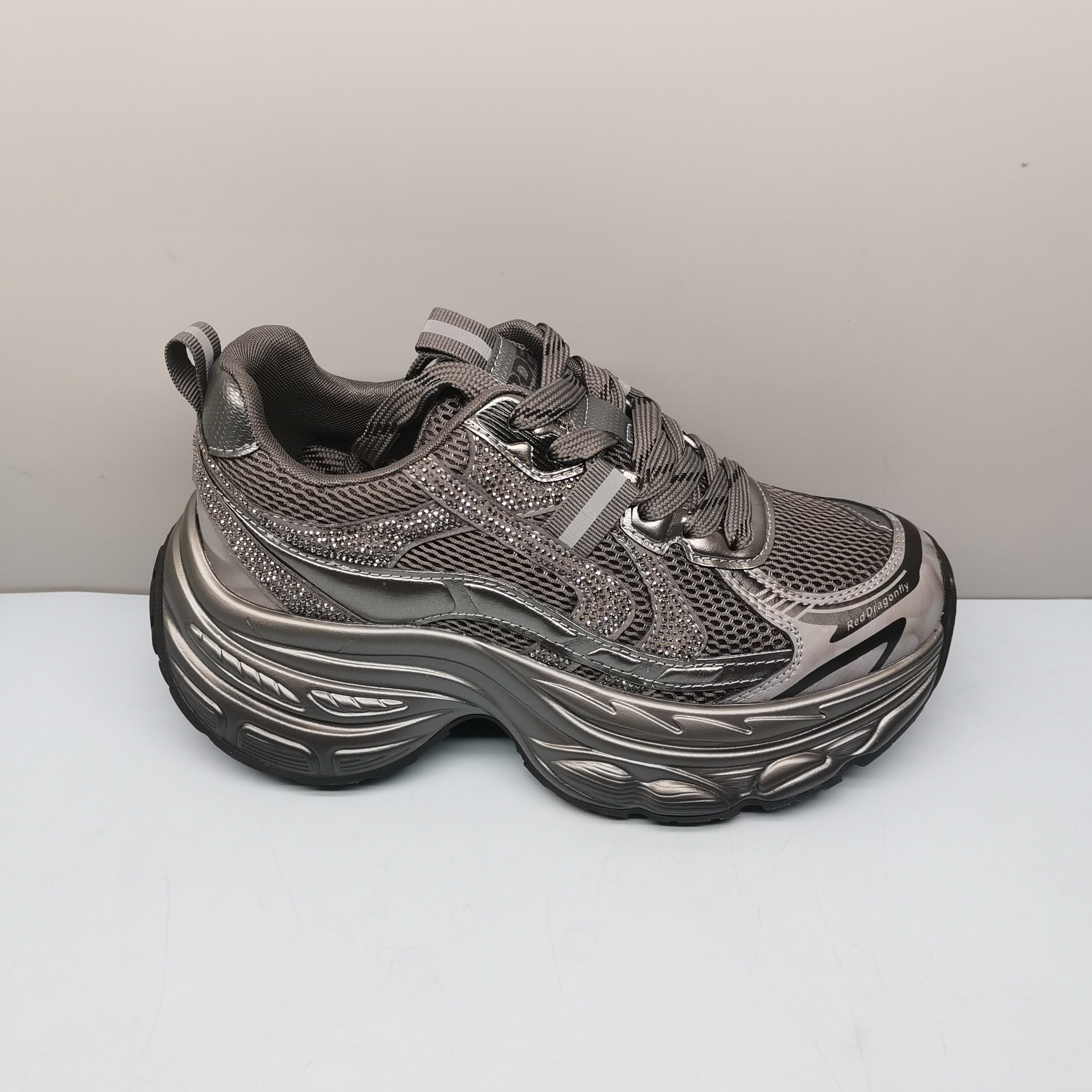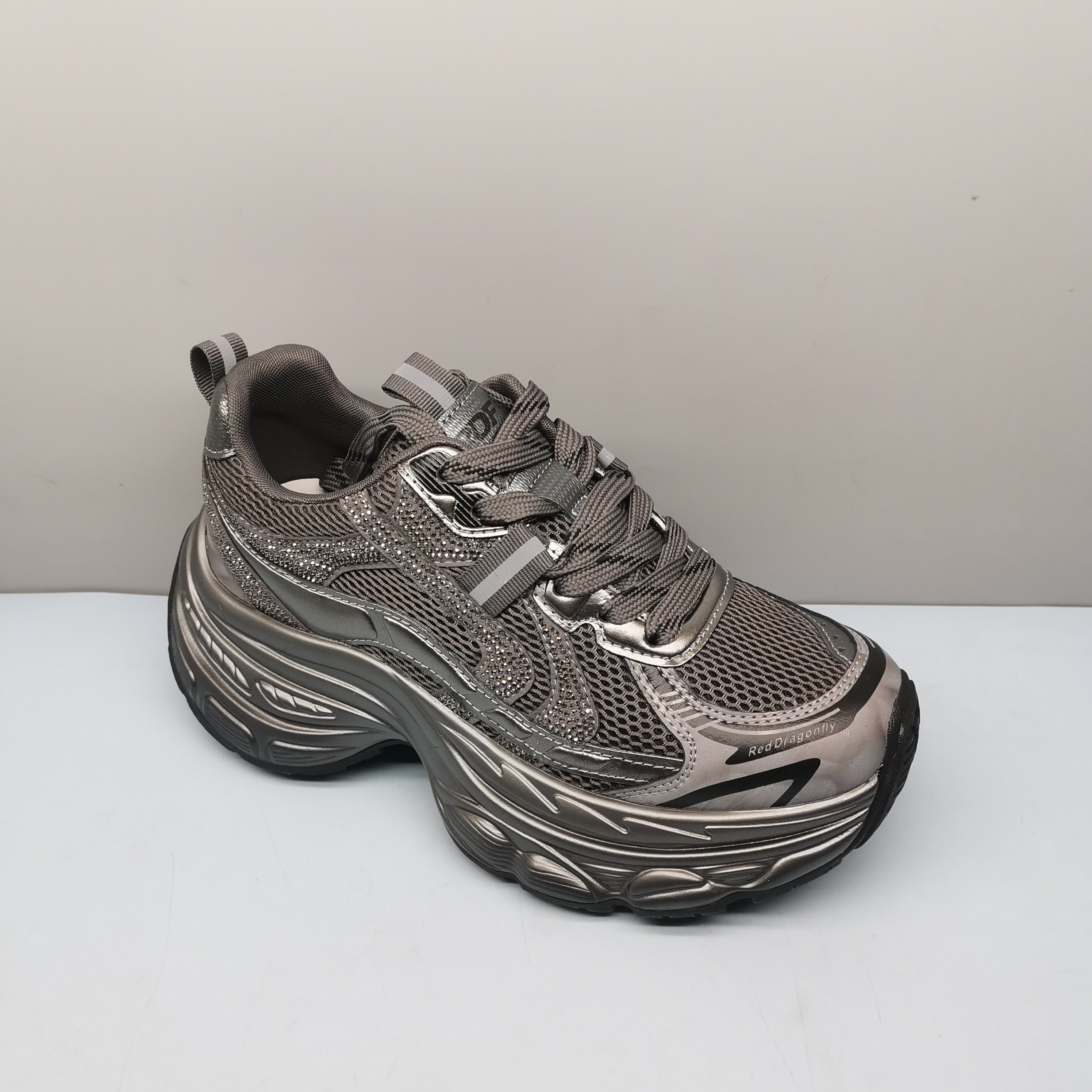 红蜻蜓增高女鞋秋季新款BD62004481F休闲厚底老爹鞋女水钻网面鞋