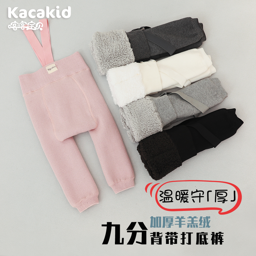 冬季新款婴儿背带打底裤男女童儿童加厚加绒宝宝九分云朵绒举重裤