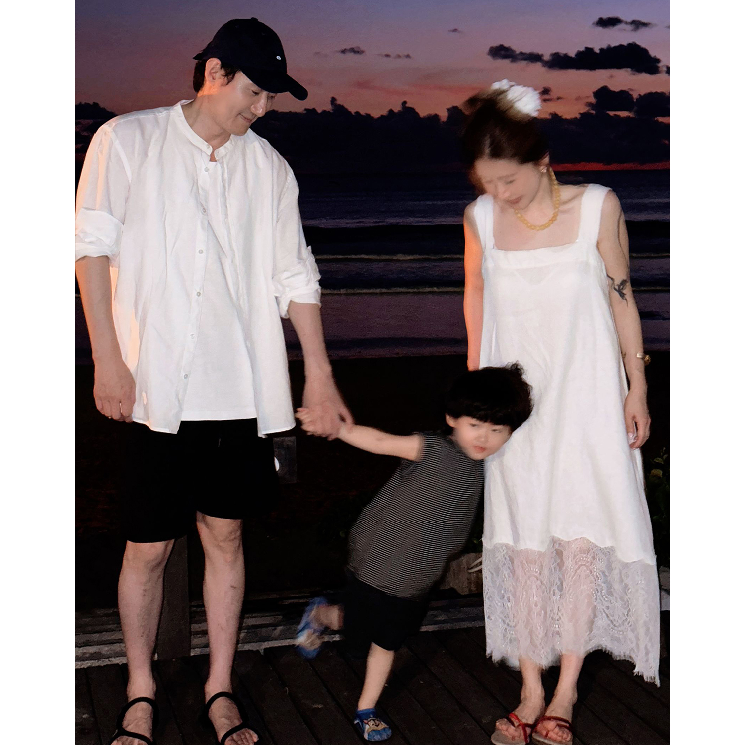 CHU楚妞[人鱼]亚麻拼接白色吊带A字连衣裙2025夏季新款女背带裙子
