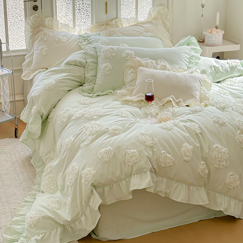 高级感立体花全棉磨毛秋冬四件套花边被套纯棉床单三件套法式床品