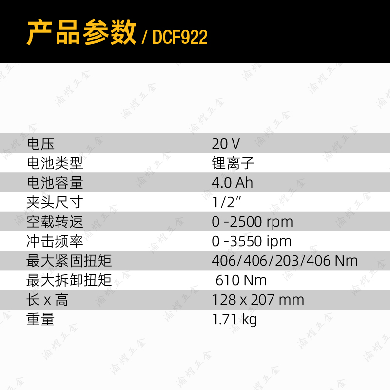 得伟20V无刷紧凑型电动扳手DCF911/DCF922充电式轮胎340/400牛米