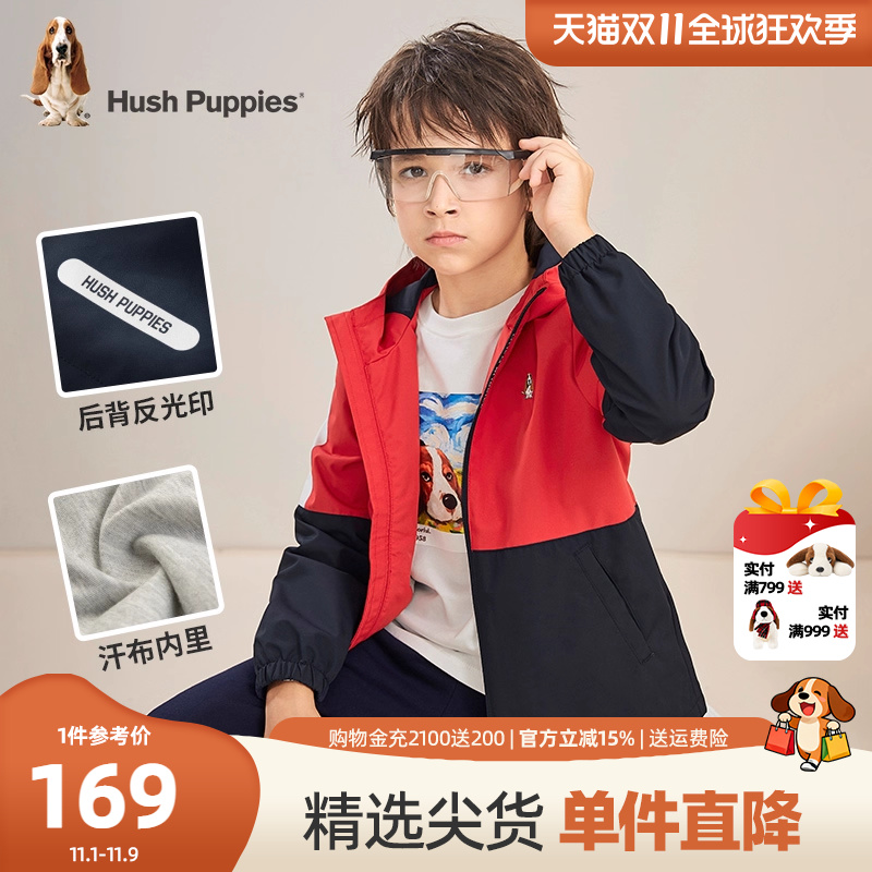 暇步士童装男童外套大童春秋装新款洋气拼色风衣儿童休闲连帽上衣