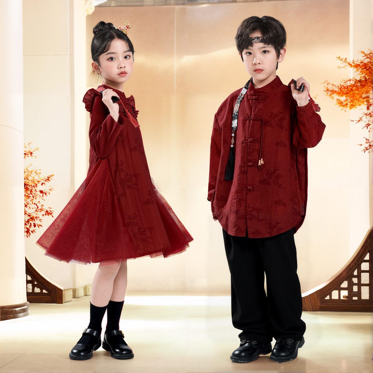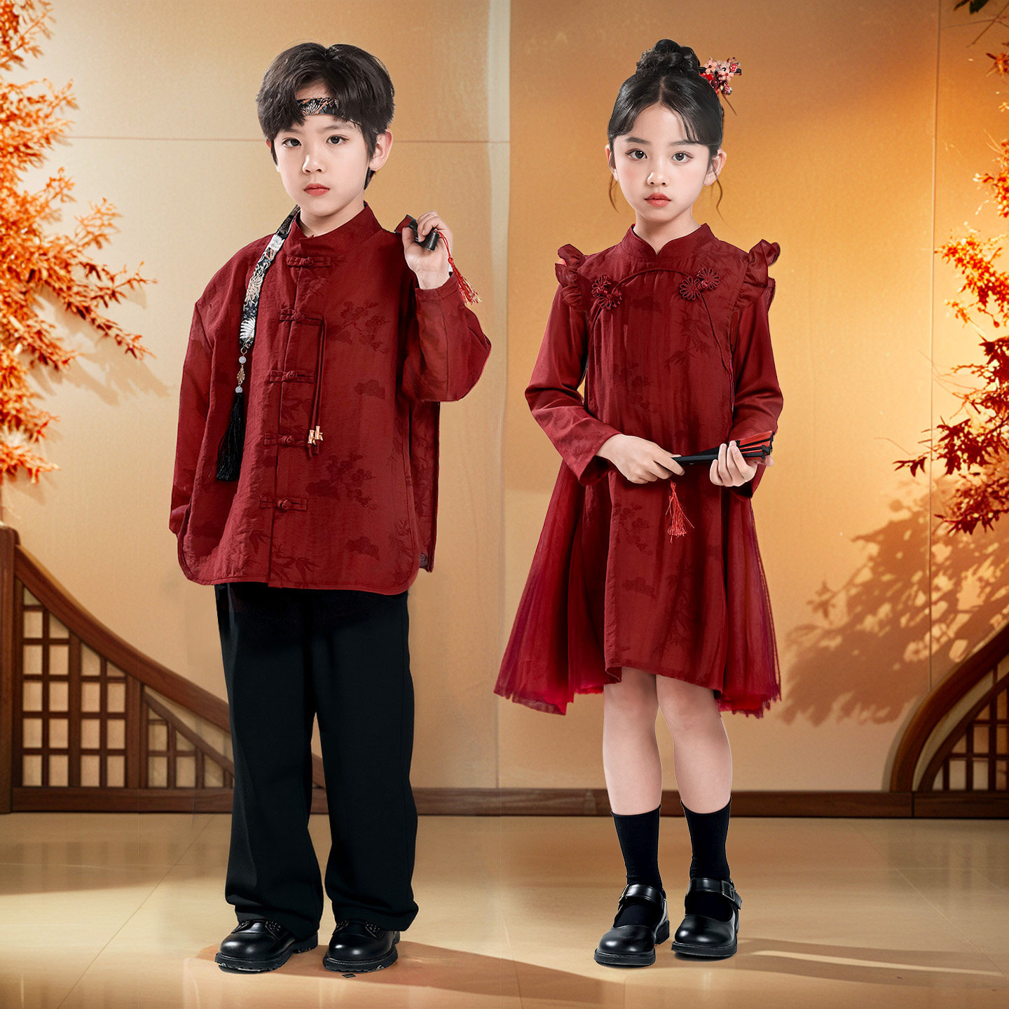 儿童唐装汉服拜年服女童旗袍新中式红色裙子小女孩国风连衣裙