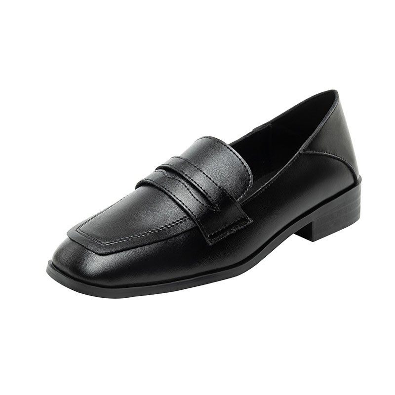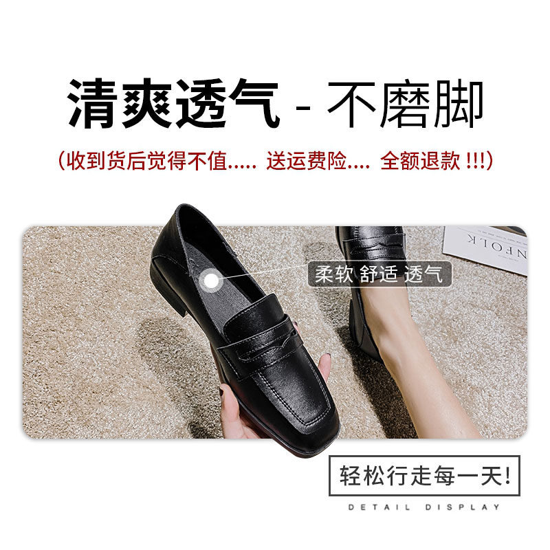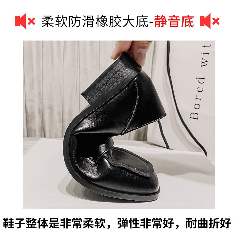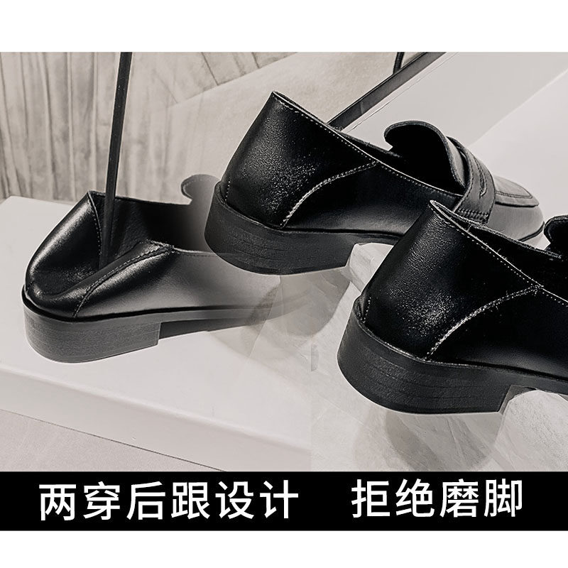 单鞋女秋冬软底职业上班小皮鞋英伦风黑色百搭平底鞋一脚蹬小黑鞋