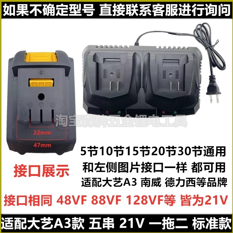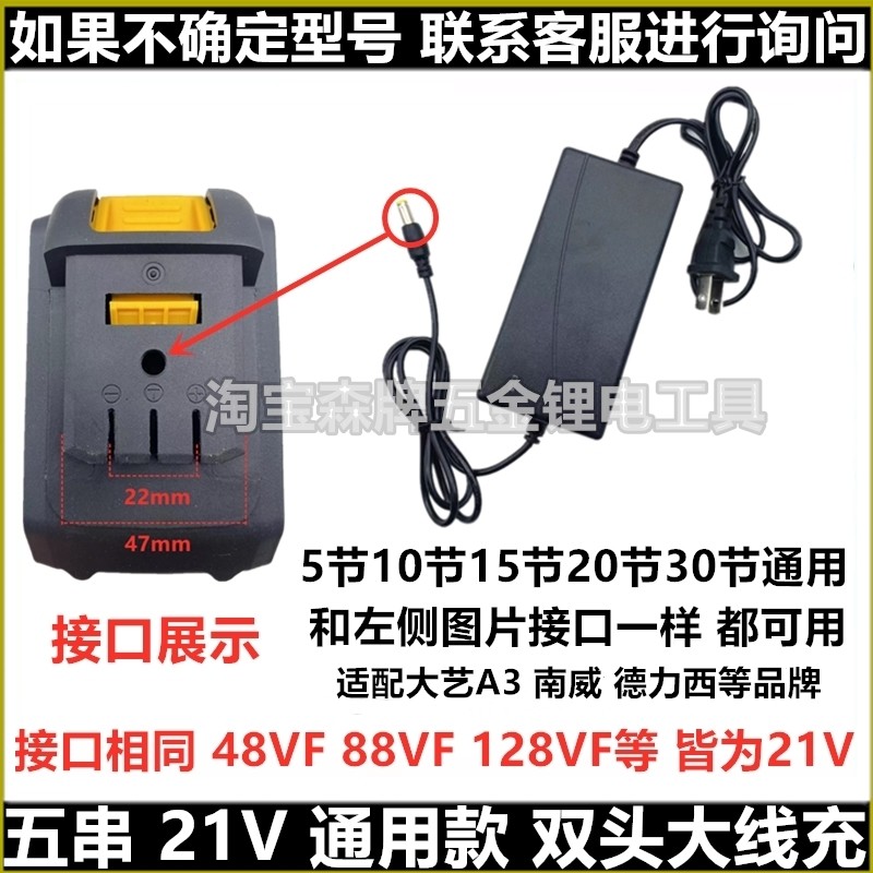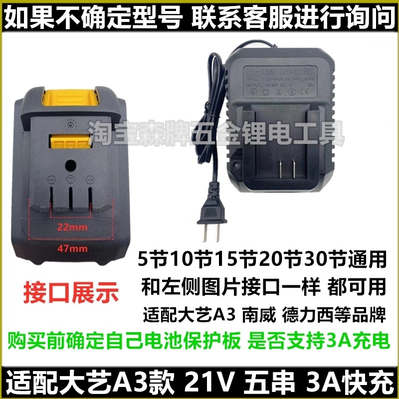 适配大艺A3款南威德力西21V电钻电动扳手电池充电器五串线充座充