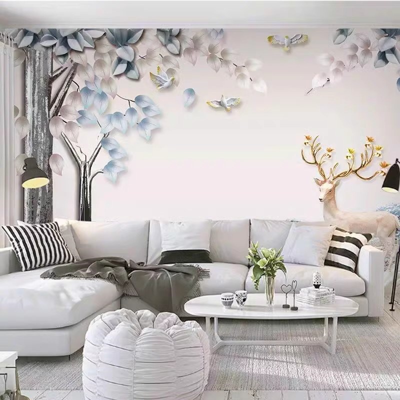 新款麋鹿电视背景墙壁纸客厅壁画3d立体墙布影视墙纸Y大气壁布家