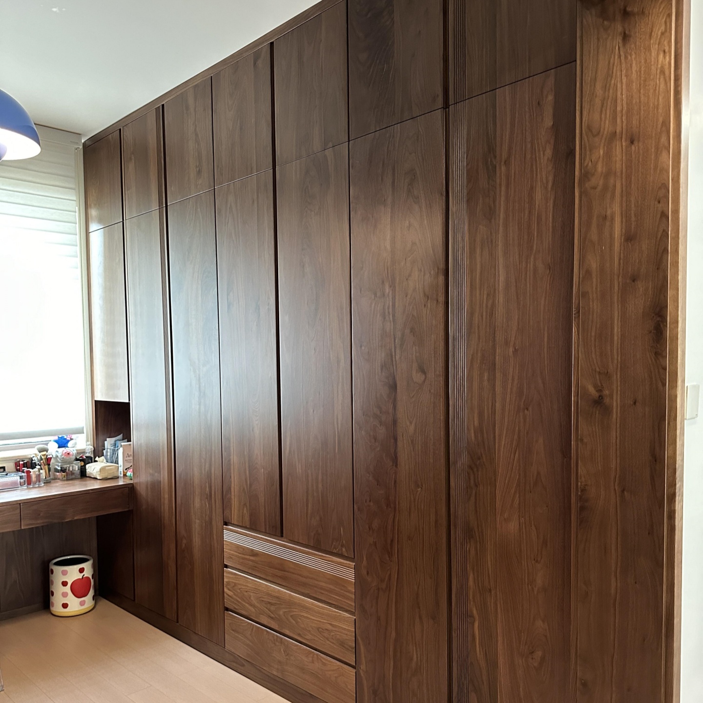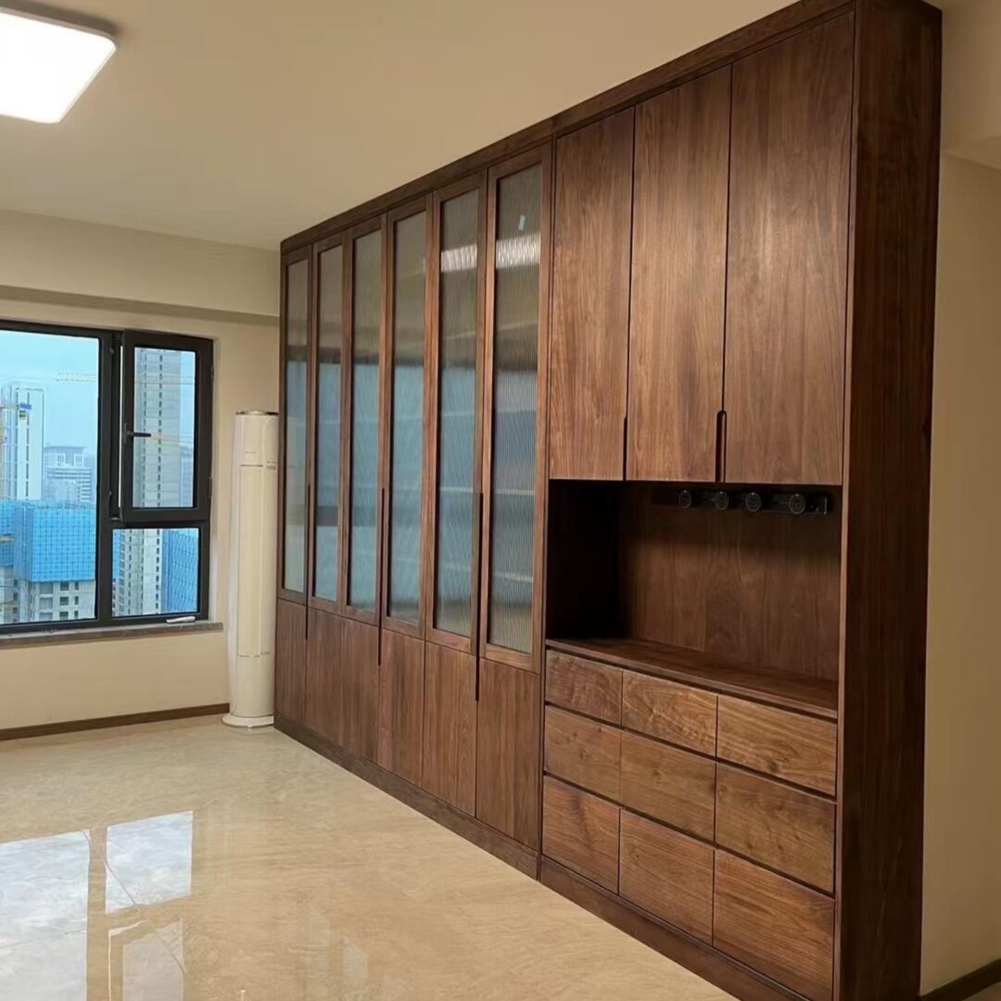 全屋定制宋氏美学北美黑胡桃木衣柜客厅中古风骨骼线餐边柜玄关柜