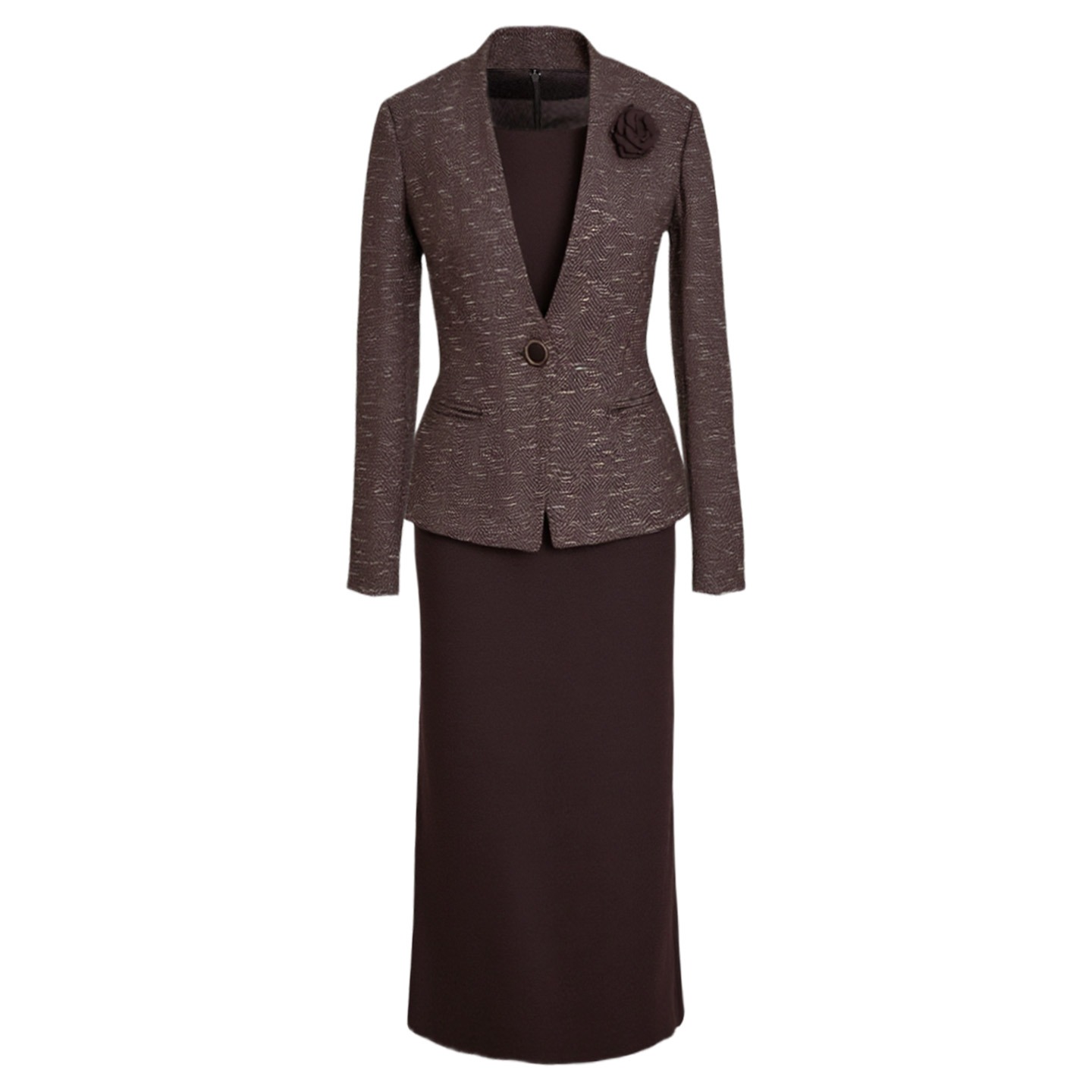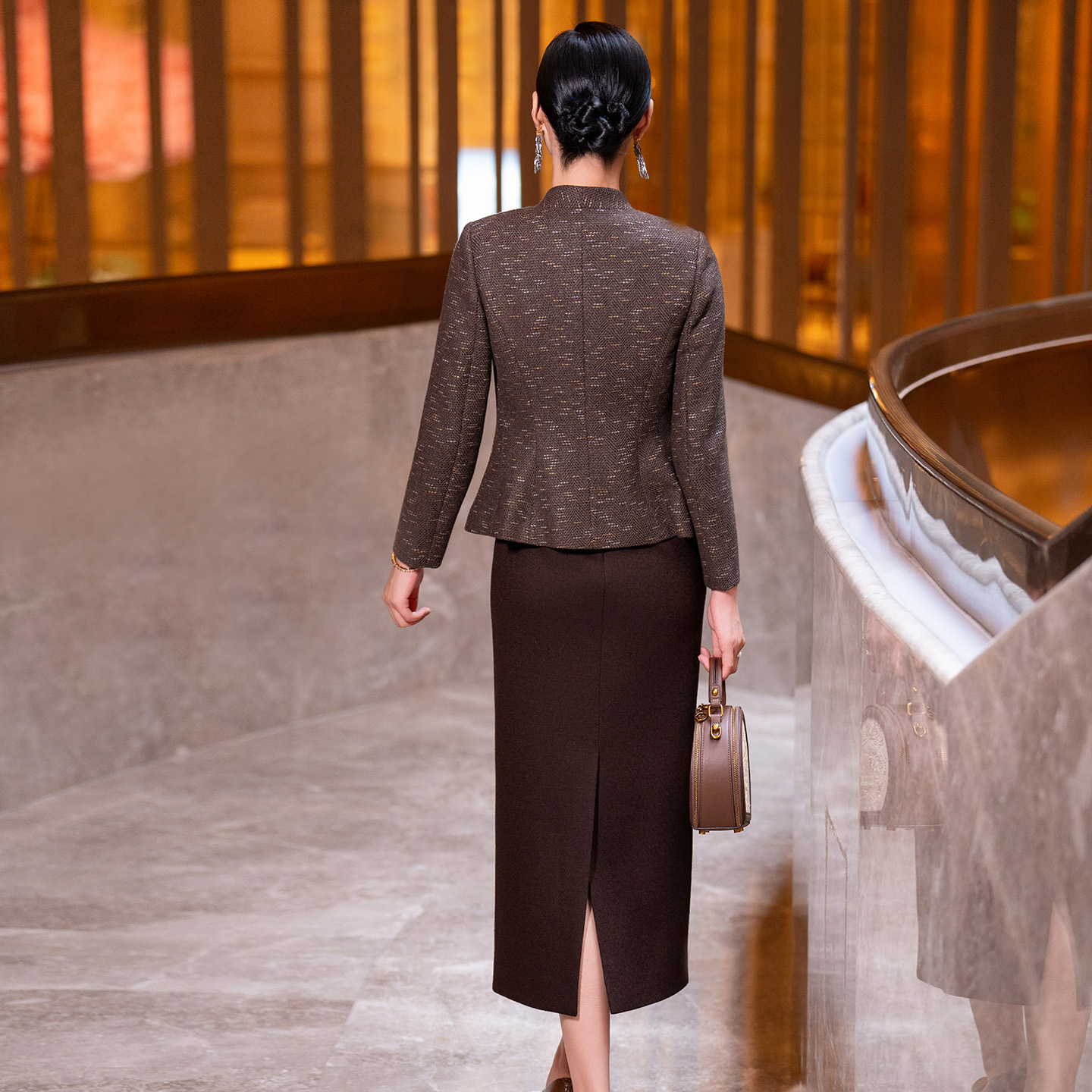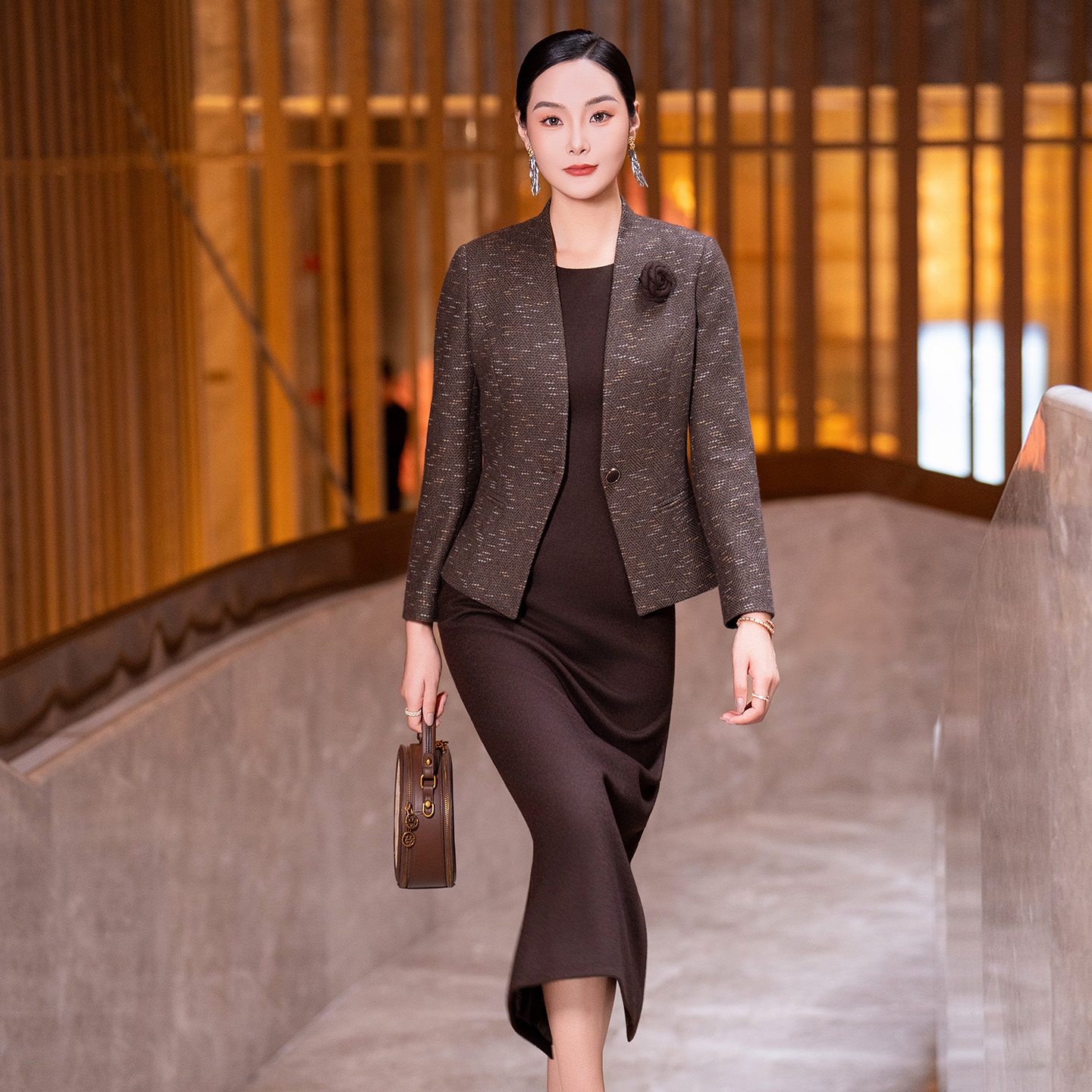 咖色小香风毛呢套装裙女冬季新款时尚气质高级感羊毛背心裙两件套