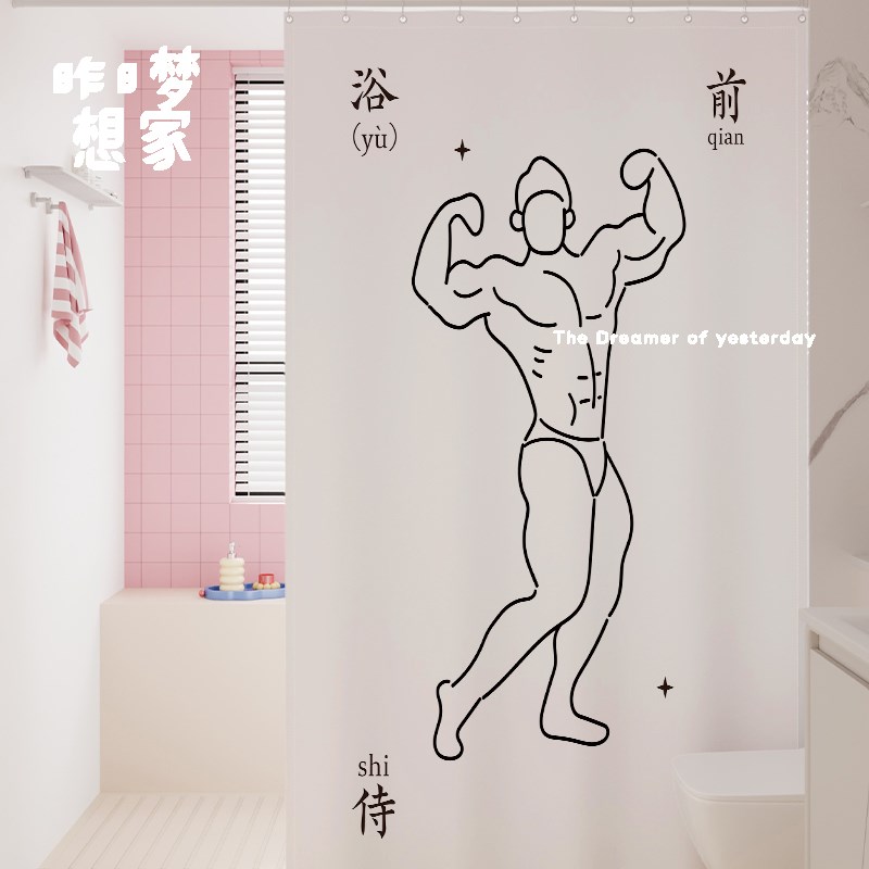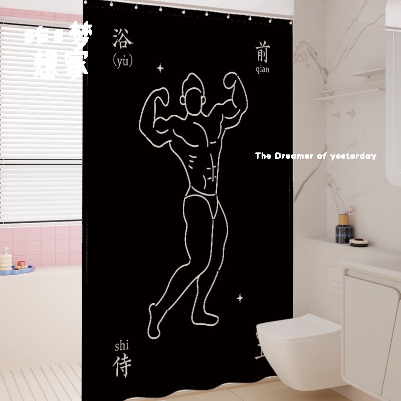 浴前侍卫卫生间加厚浴帘布防霉防水卡通浴帘套装免打孔淋浴隔断帘