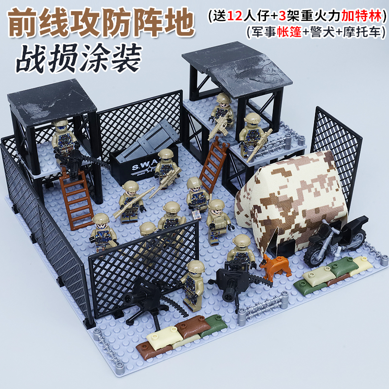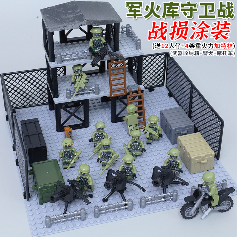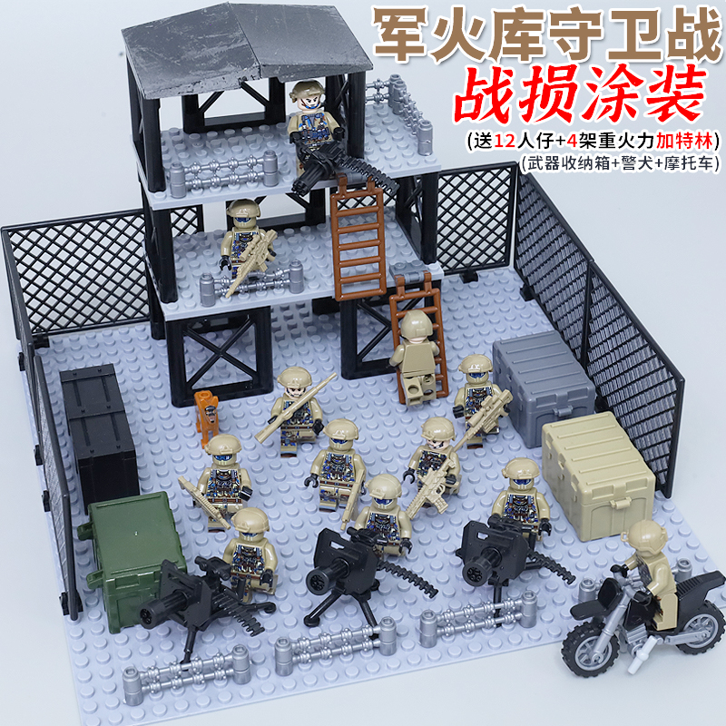 适用乐高军事基地人仔积木特种兵瞭望塔哨所场景男孩拼装玩具军人