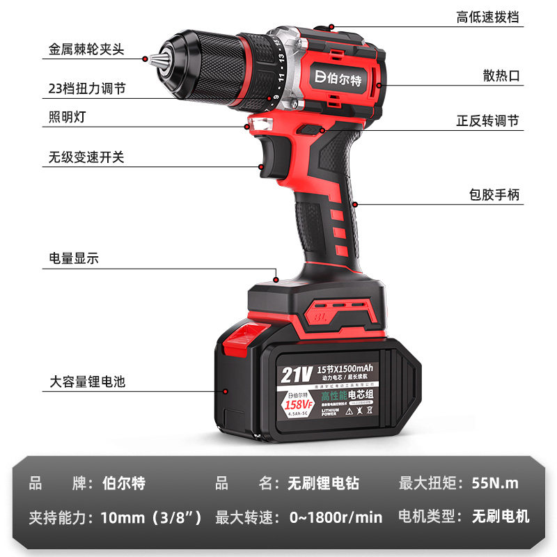 伯尔特无刷电钻家用电动螺丝刀棘轮手枪冲击钻适用锂电充电手电钻
