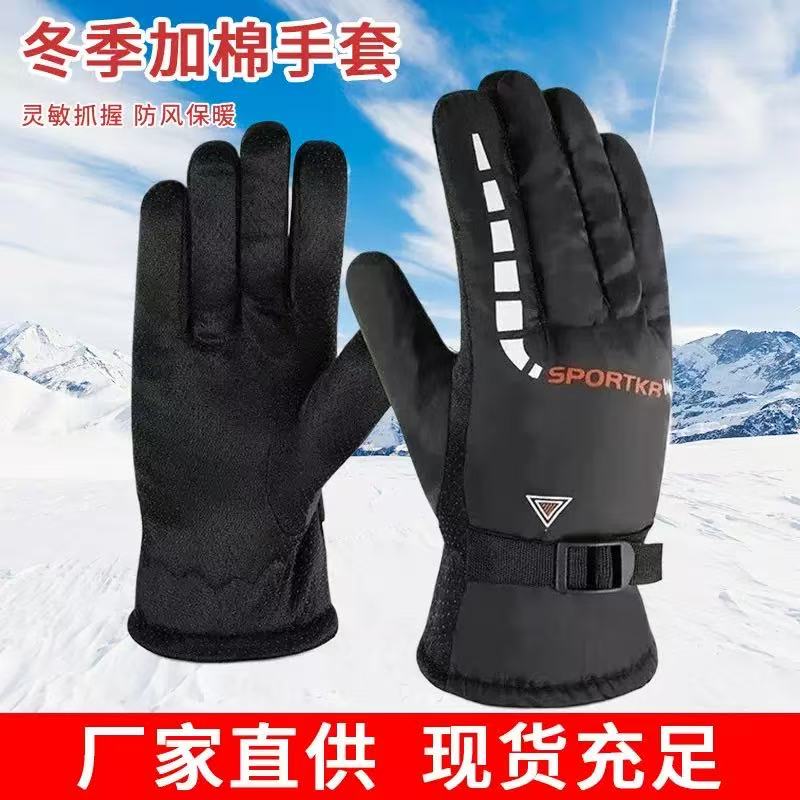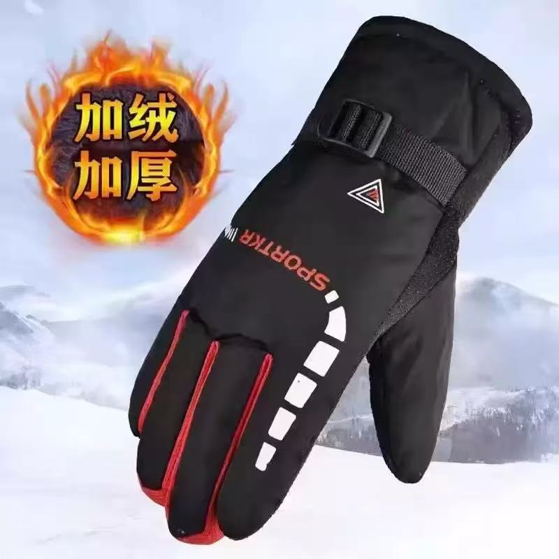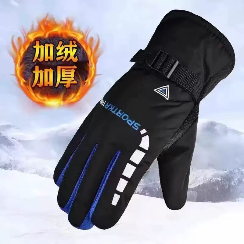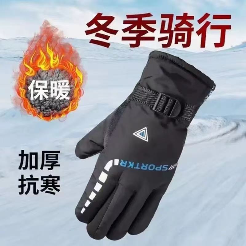 冬季保暖手套男加厚加绒摩托车电动车骑行防寒防风防水滑雪棉手套