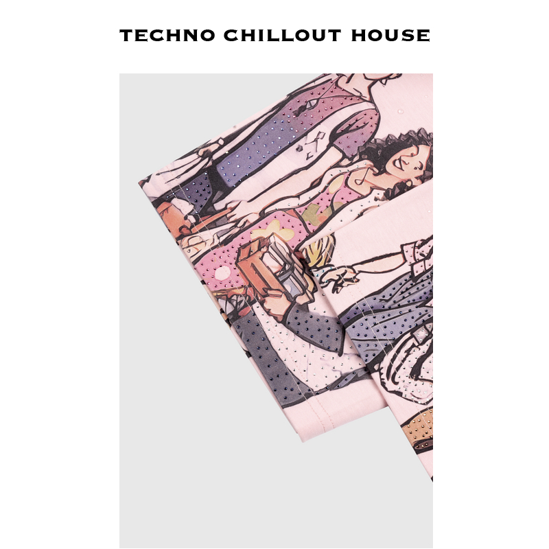 TCH 少女粉减龄气质设计感烫钻宽松短袖T恤2025夏季T72B106188