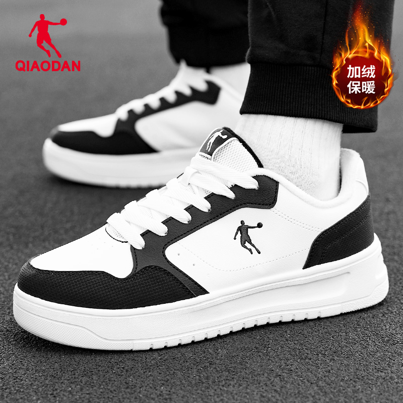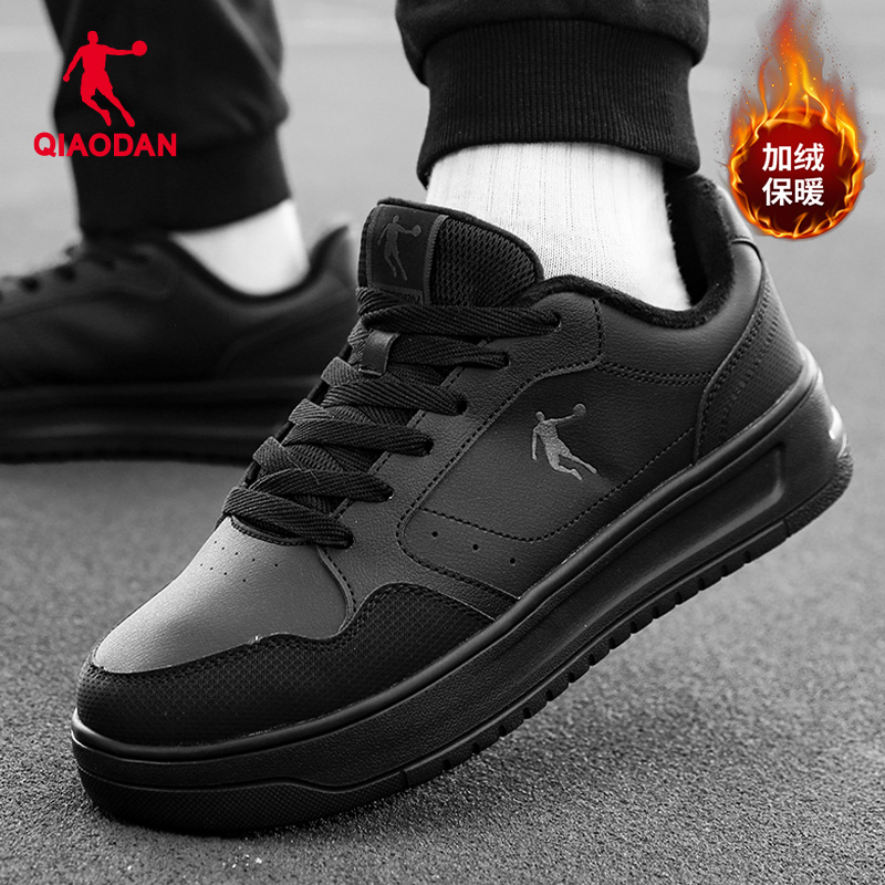 乔丹加绒小白鞋板鞋男款2025冬季新款防寒保暖二棉鞋皮面运动鞋子