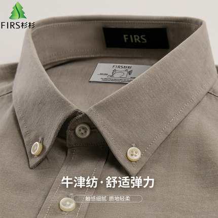 杉杉牛津纺长绒棉春秋新款商务休闲纯色衬衣长袖衬衫男士弹力寸衫