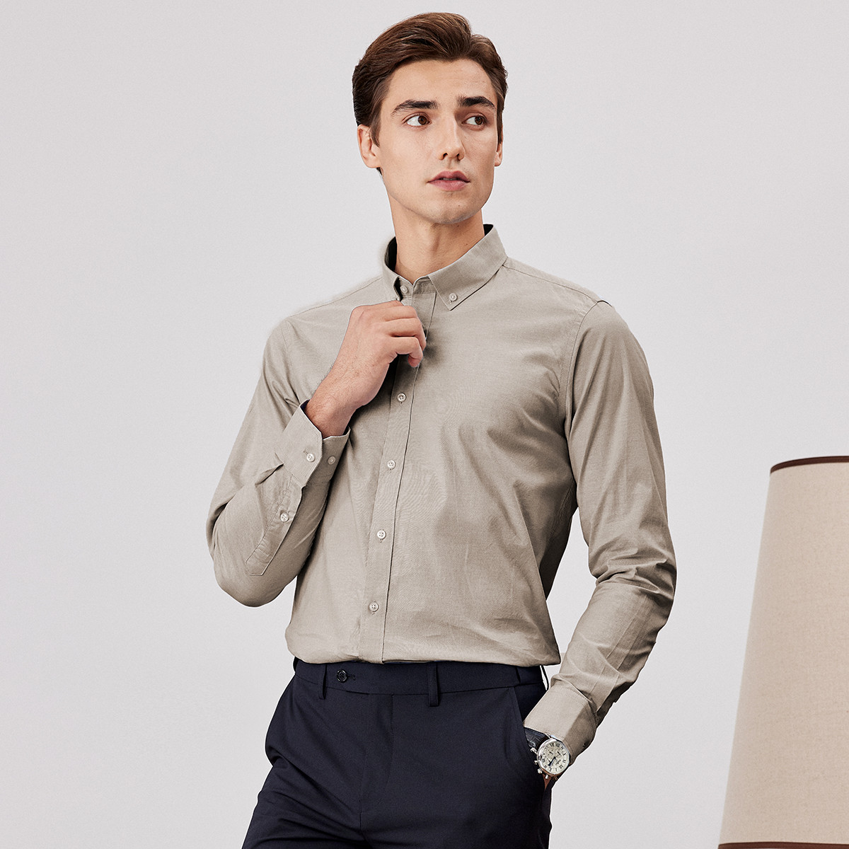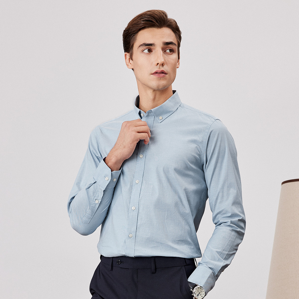 杉杉透气牛津纺长绒棉男长袖衬衫