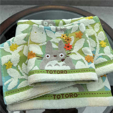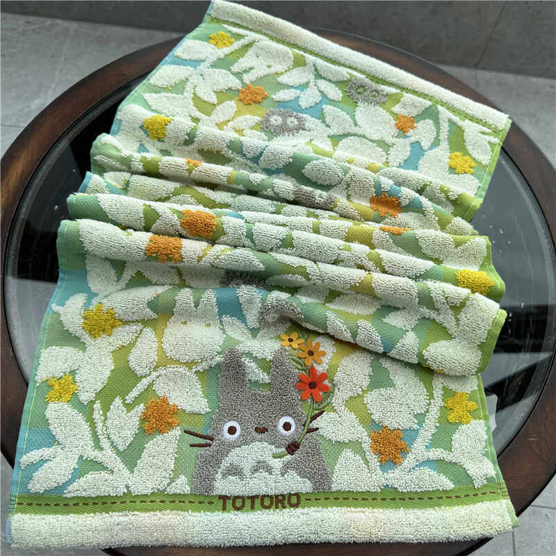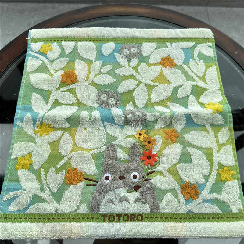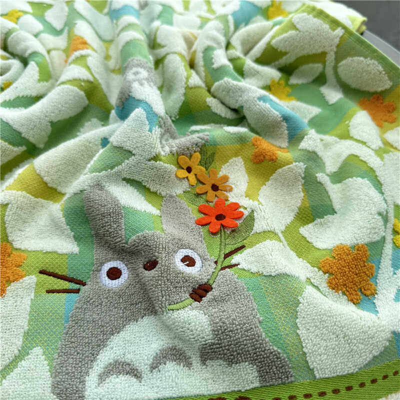 出口日本原单 宫崎骏持花朵龙猫卡通刺绣纯棉 全棉大方巾毛巾浴巾