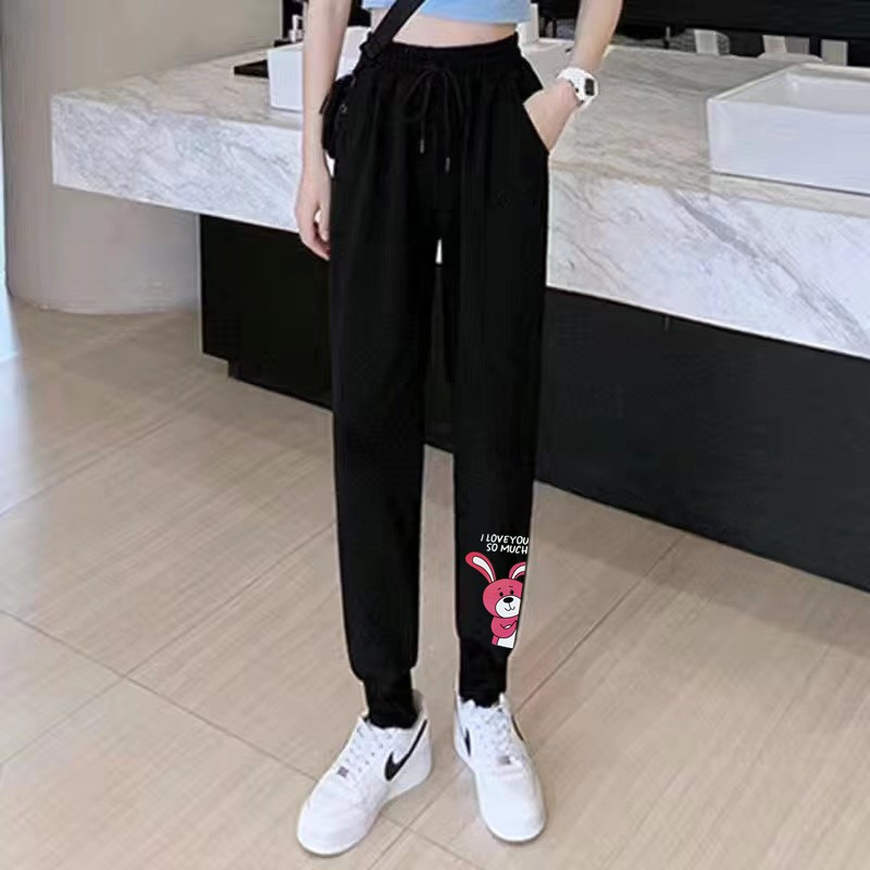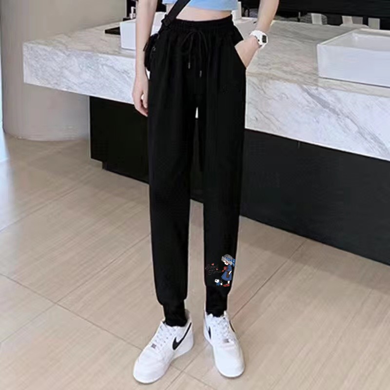 黑色运动裤女夏季薄款高腰显瘦九分裤韩版宽松百搭大码束脚休闲裤