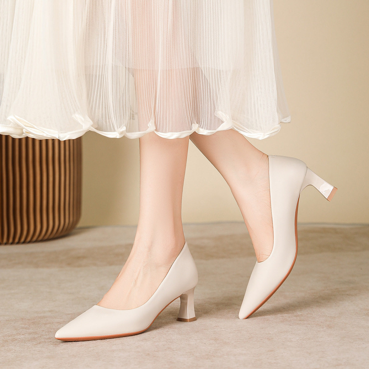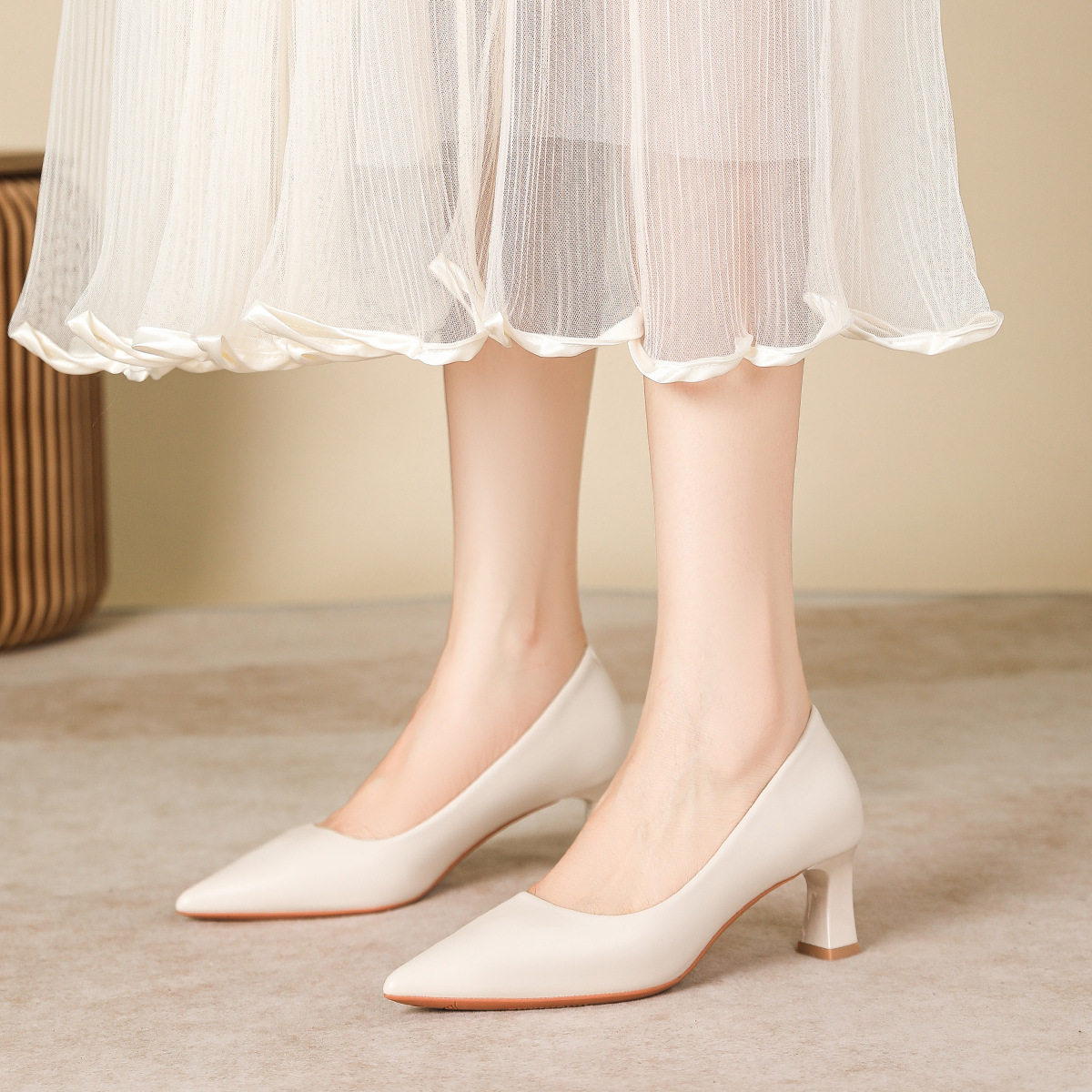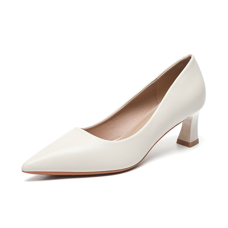 尖头高跟鞋女2025秋季新款法式粗跟职业通勤工作百搭白色气质单鞋