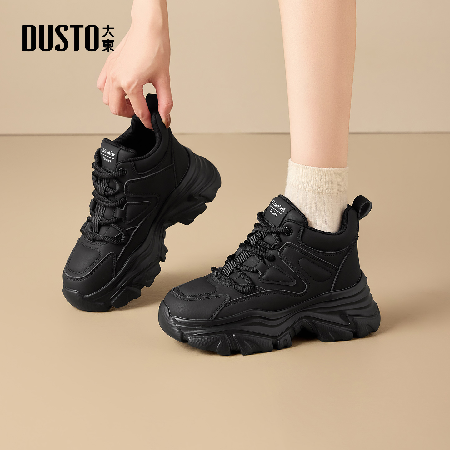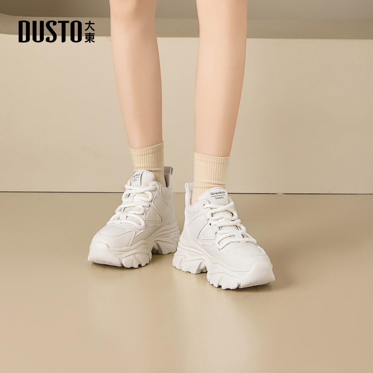 大东白色老爹鞋女款2025新款秋冬厚底增高百搭高帮鞋子休闲运动鞋