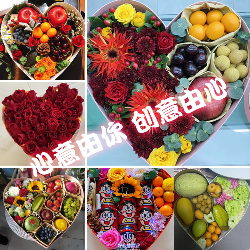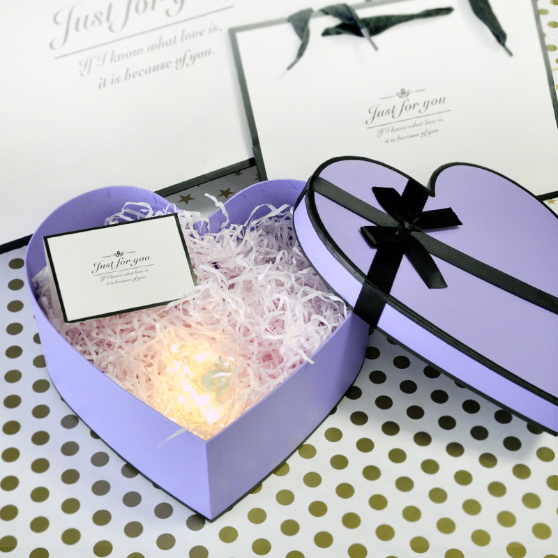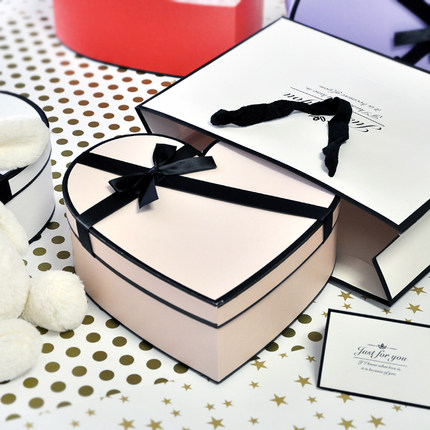 大号心形礼品盒中号礼物鲜花水果包装盒母亲节情人生日白红紫纯色