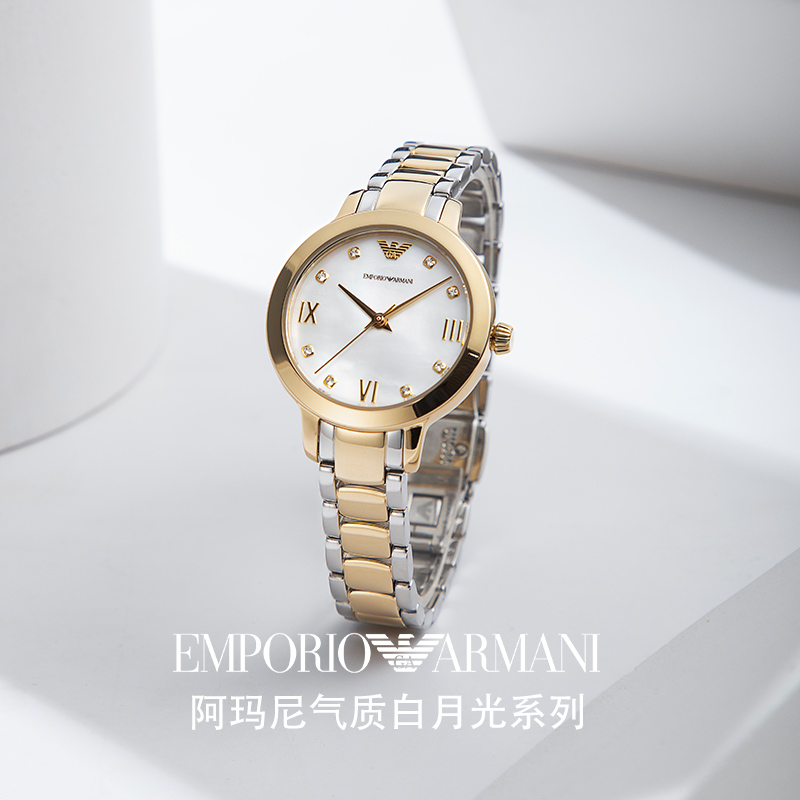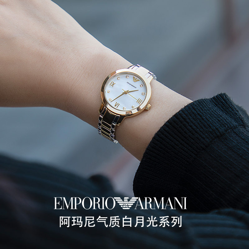 Armani阿玛尼手表女 时尚轻奢白月光石英女表官方正品AR11513