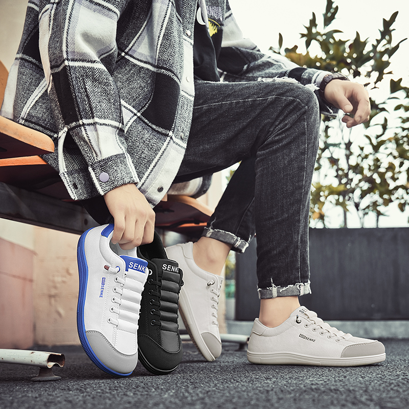 帆布鞋男春秋休闲潮流低帮板鞋青少年轻便软底运动小白宽楦赤足鞋