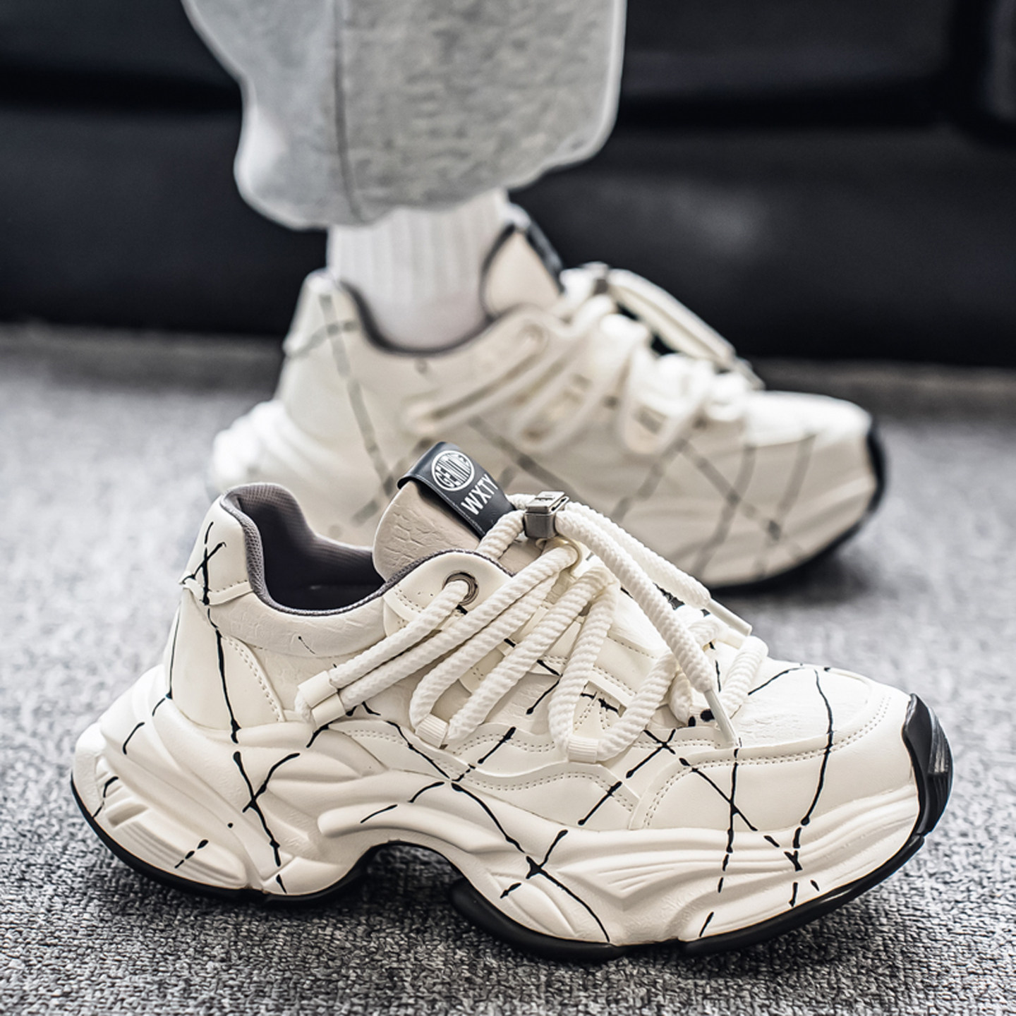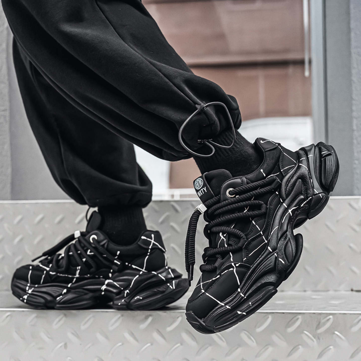 黑武士男鞋2026冬季新款潮牌高级感网面运动休闲厚底增高老爹潮鞋