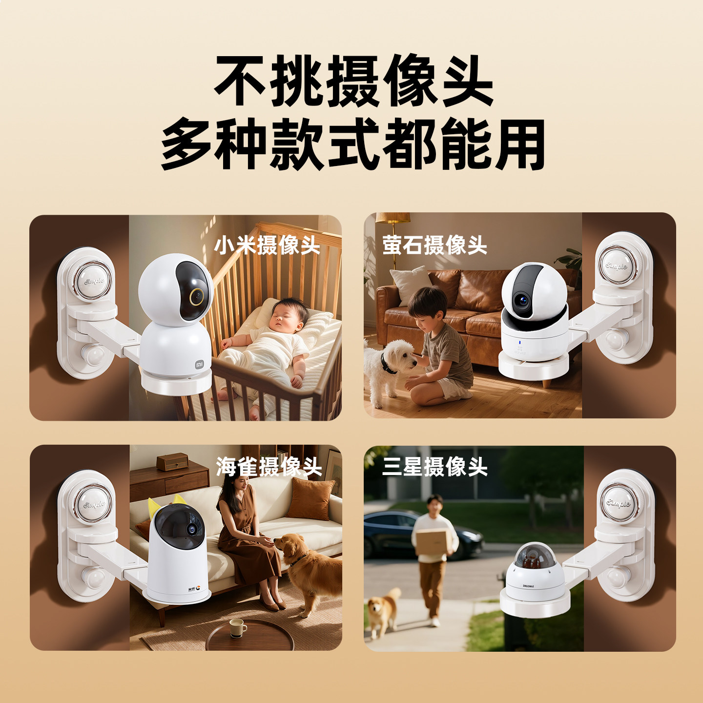 吸盘监控摄像头支架免打孔伸缩小米萤石放置固定器家用摄影置物架